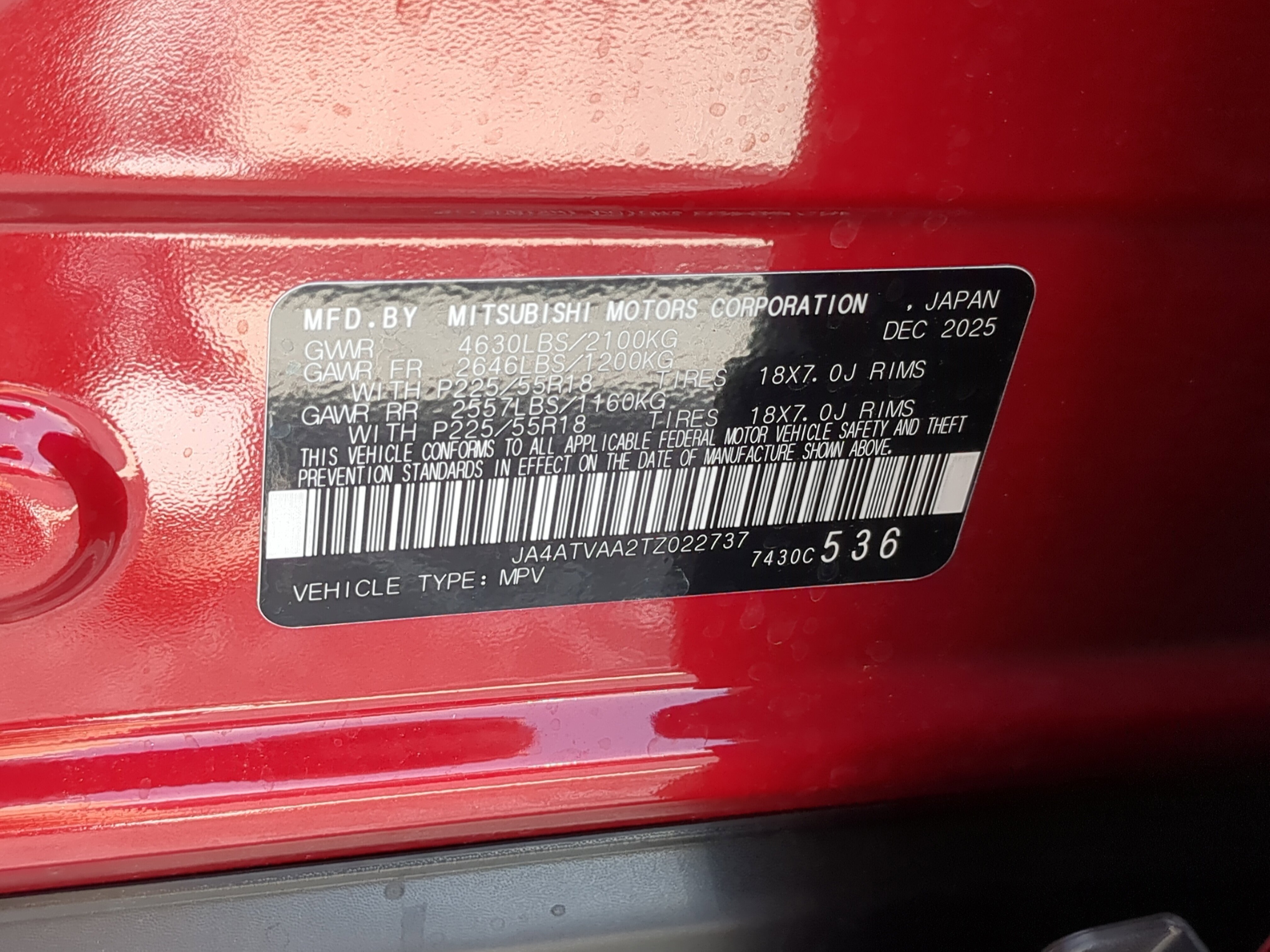 • VIN # JA4ATVAA2TZ022737