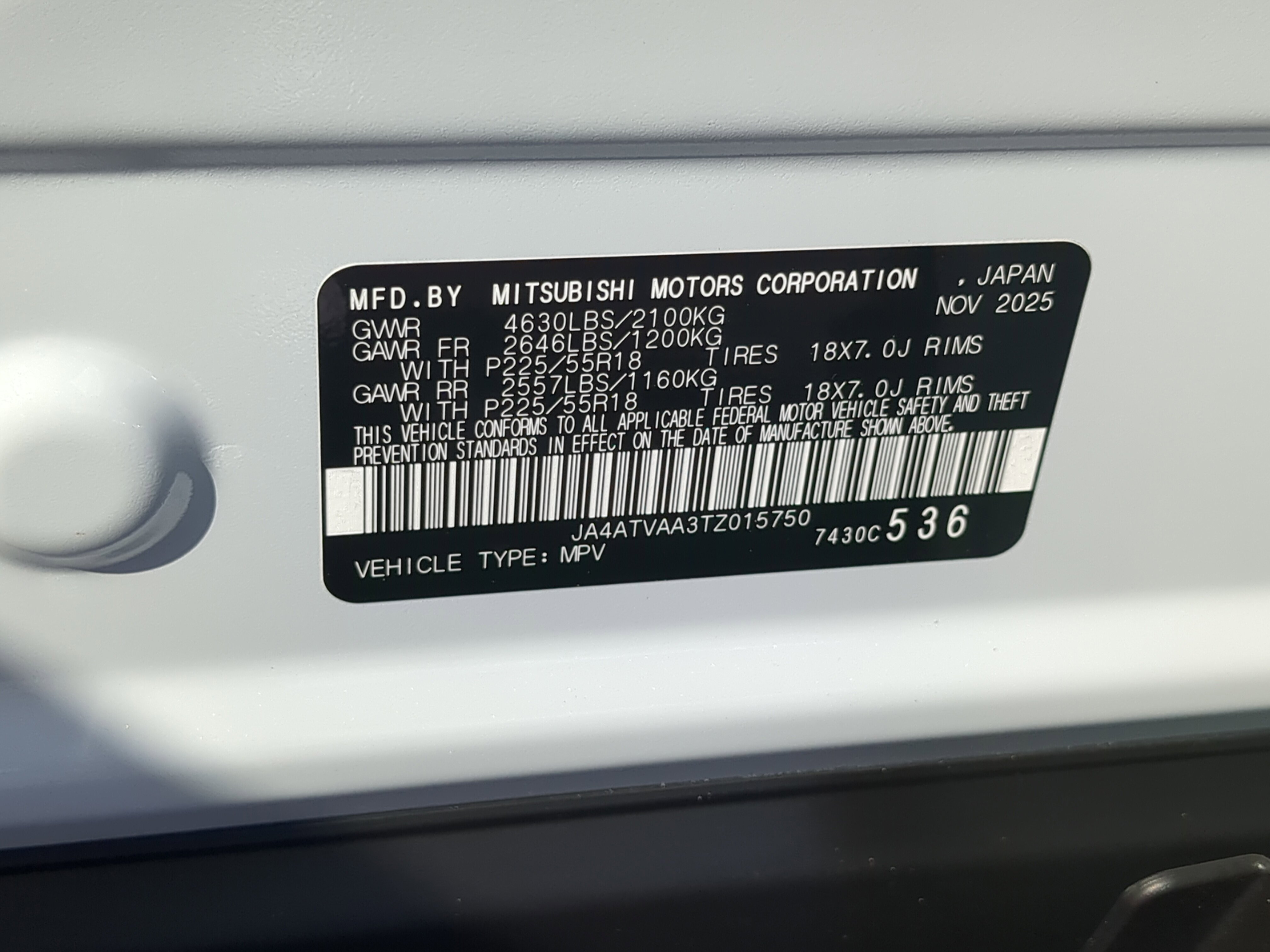 • VIN # JA4ATVAA3TZ015750