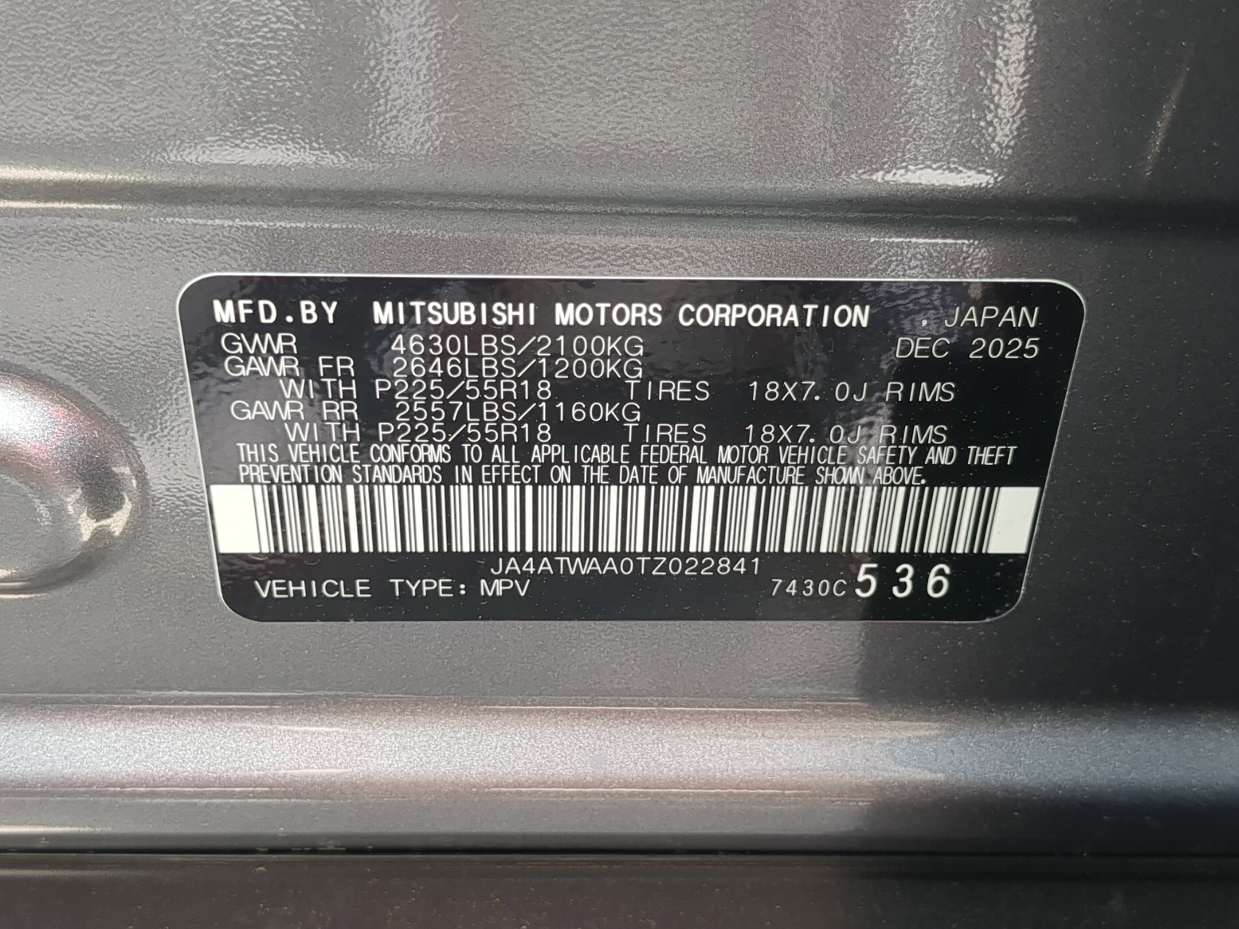 • VIN # JA4ATWAA0TZ022841