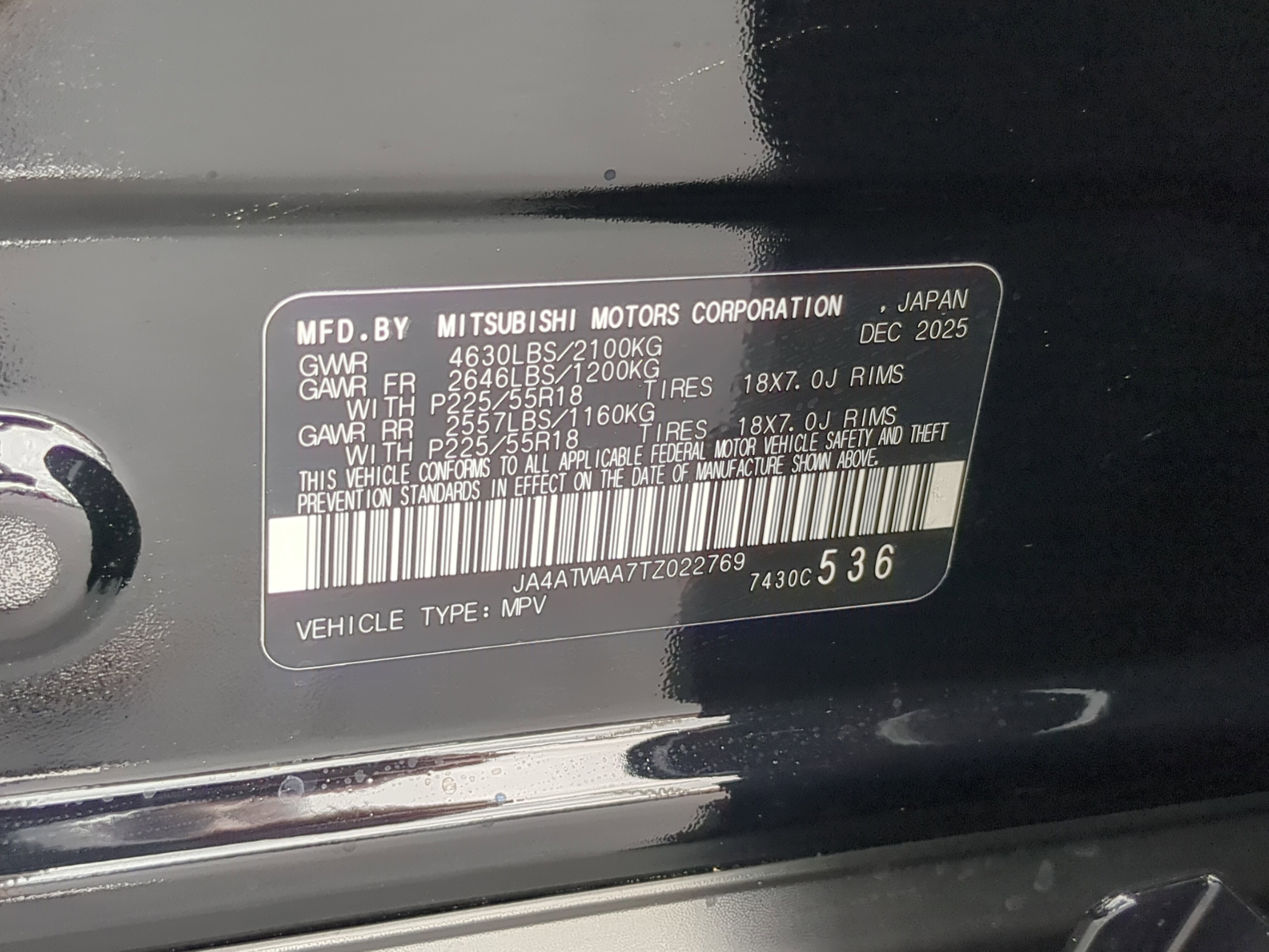 • VIN # JA4ATWAA7TZ022769