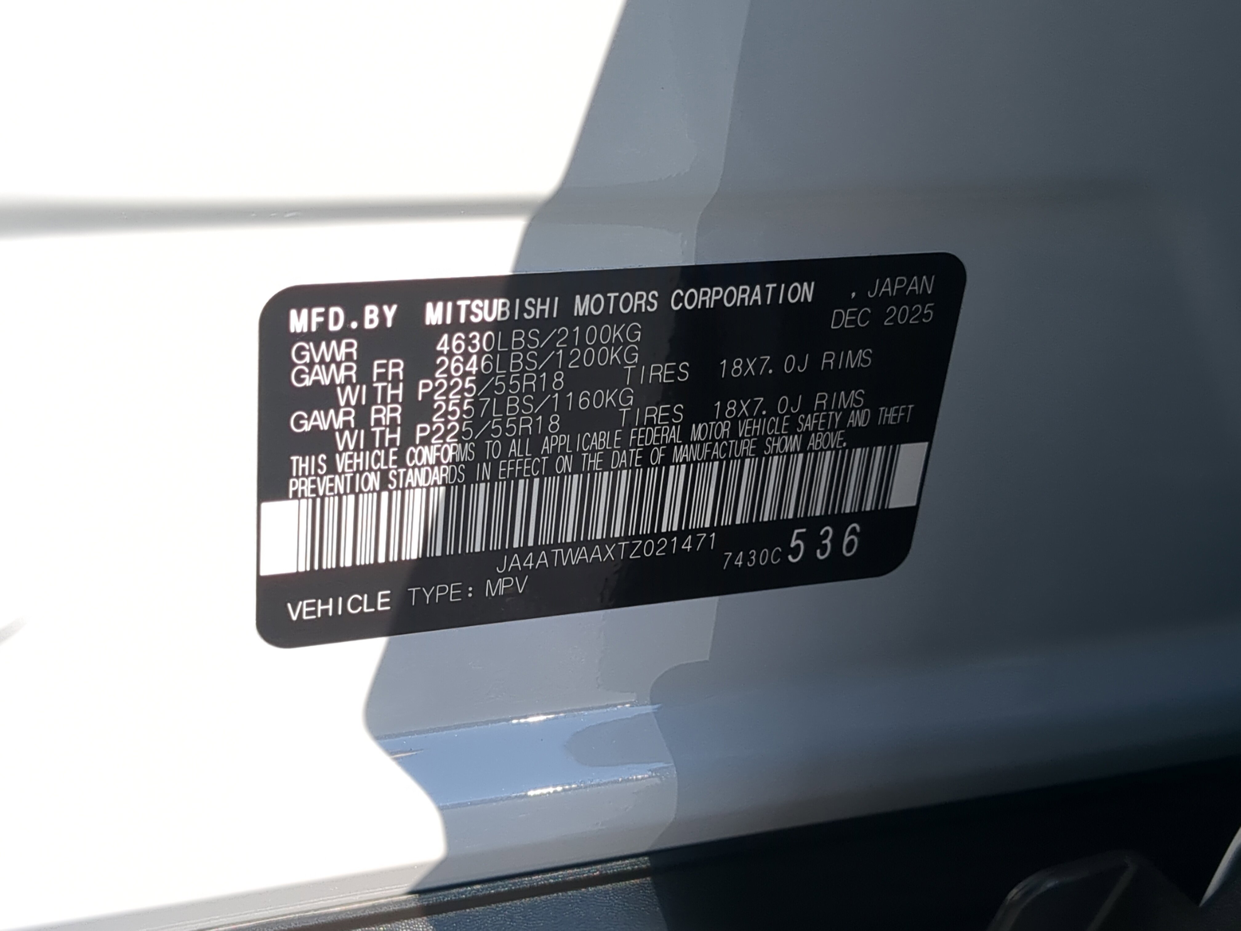 • VIN # JA4ATWAAXTZ021471