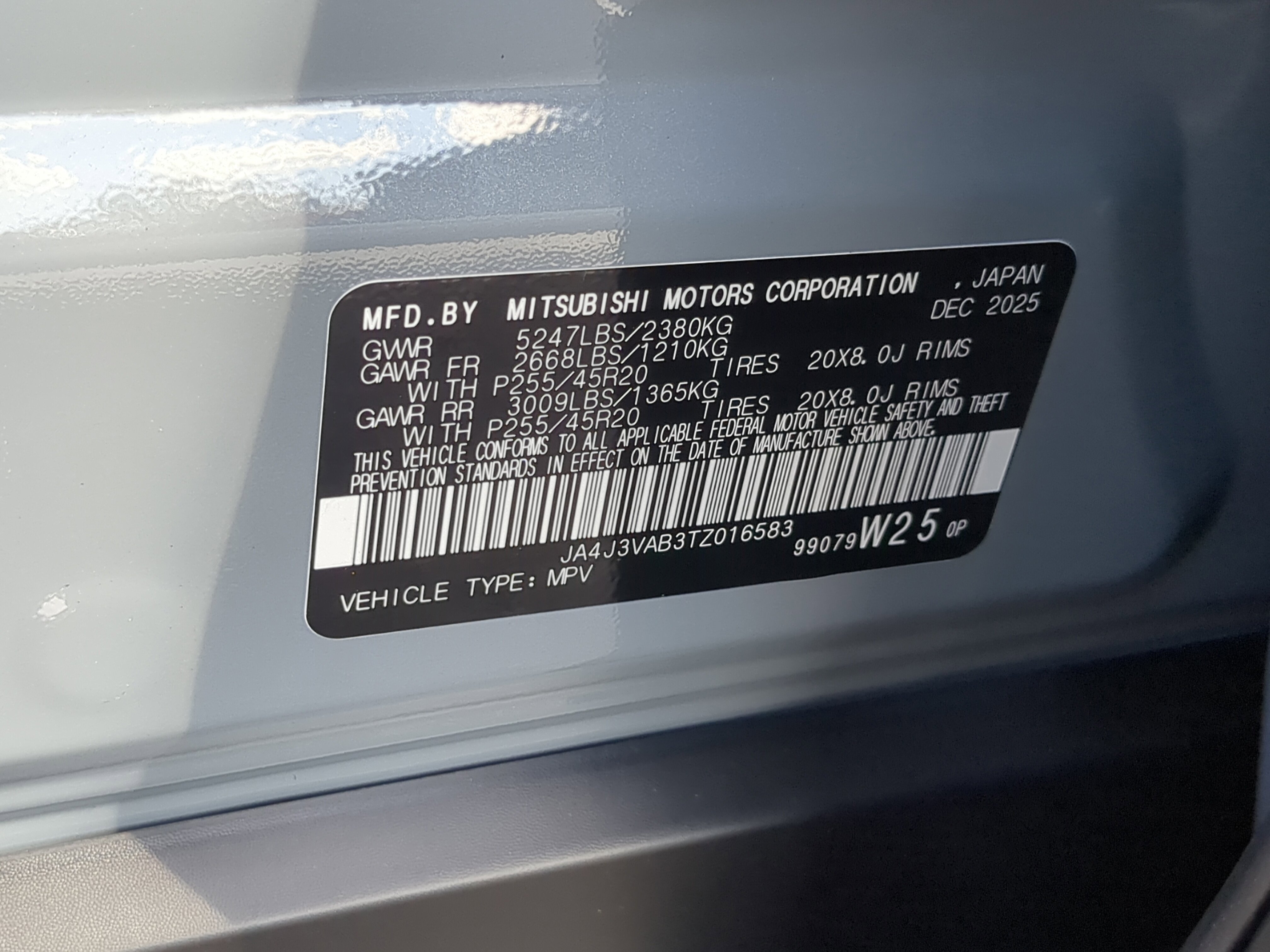 • VIN # JA4J3VAB3TZ016583