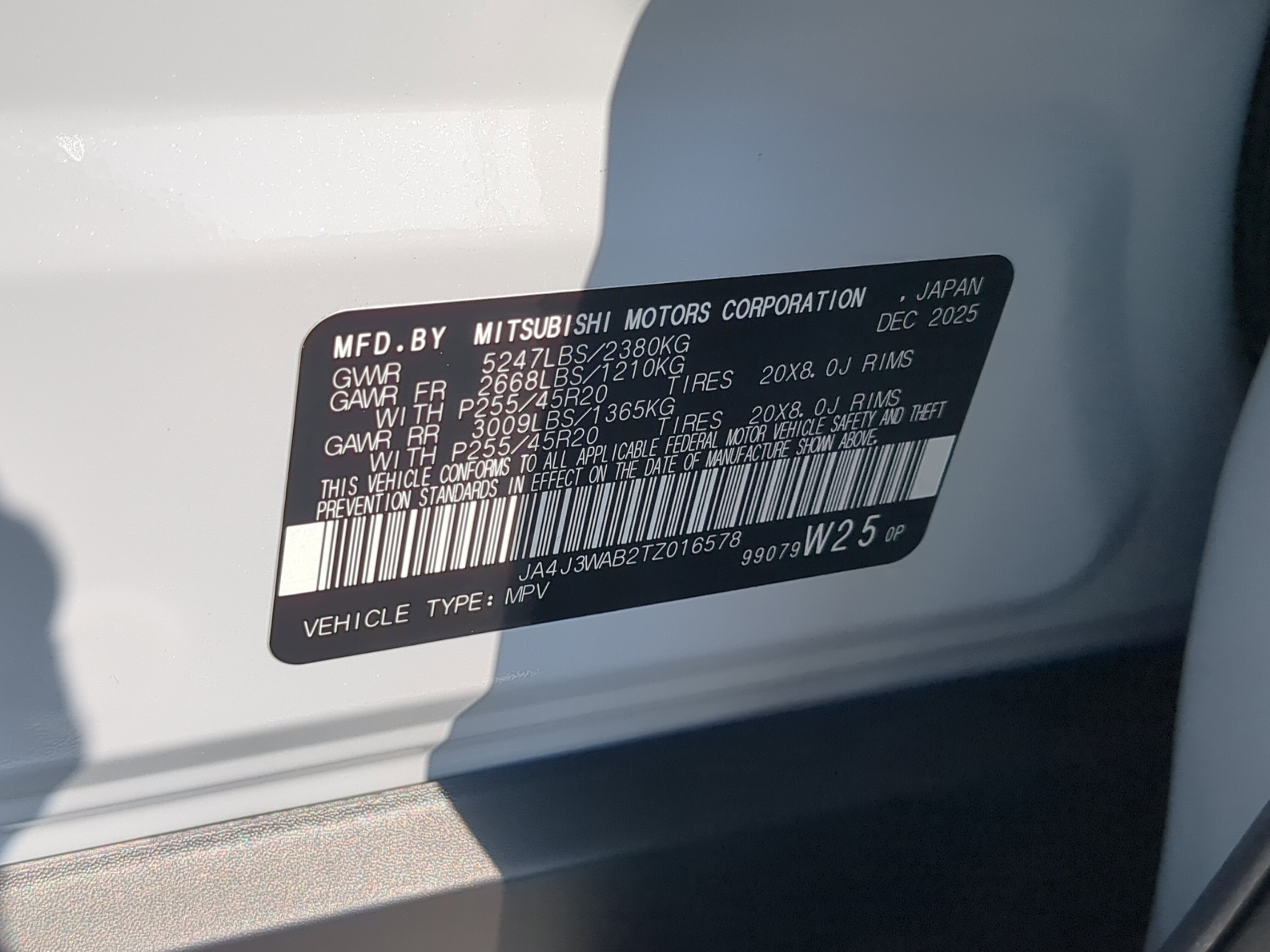 • VIN # JA4J3WAB2TZ016578