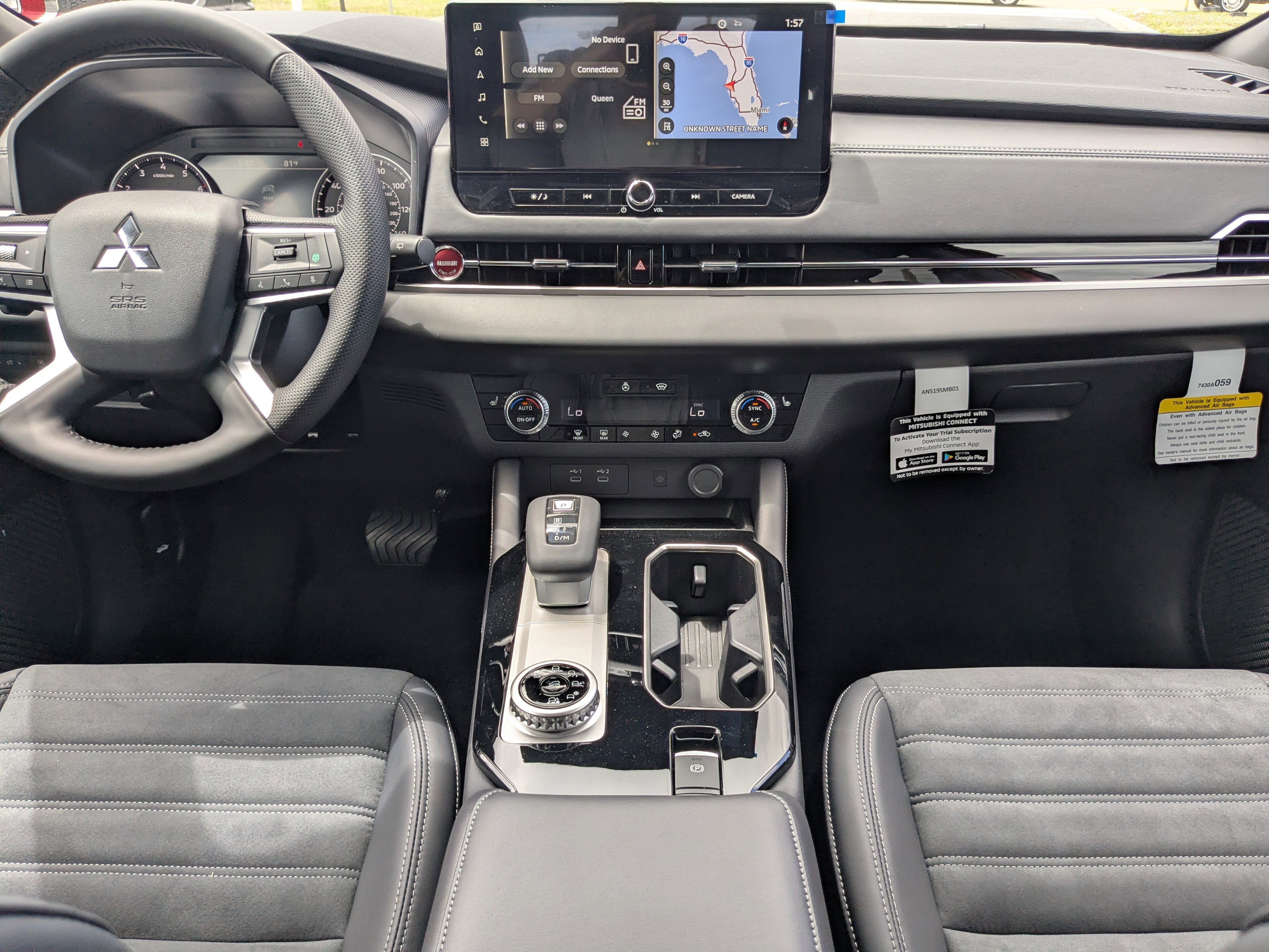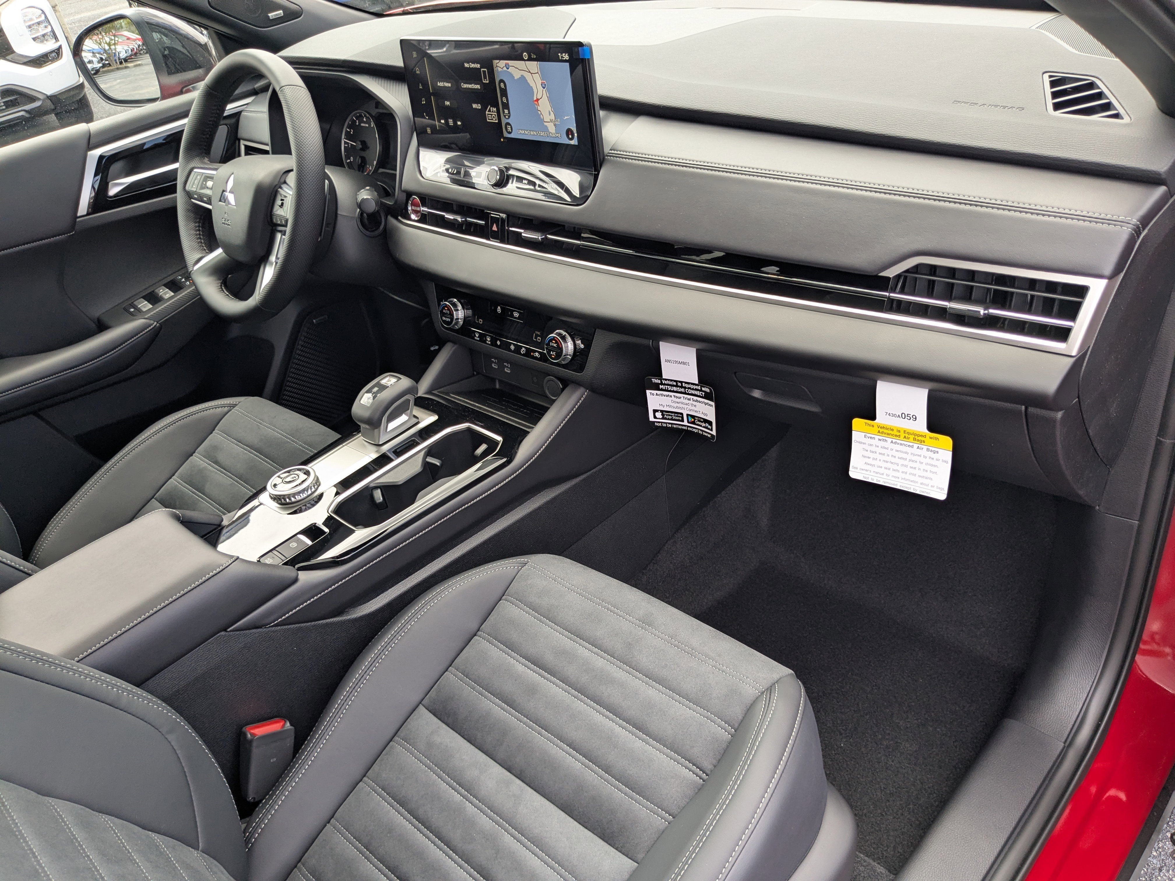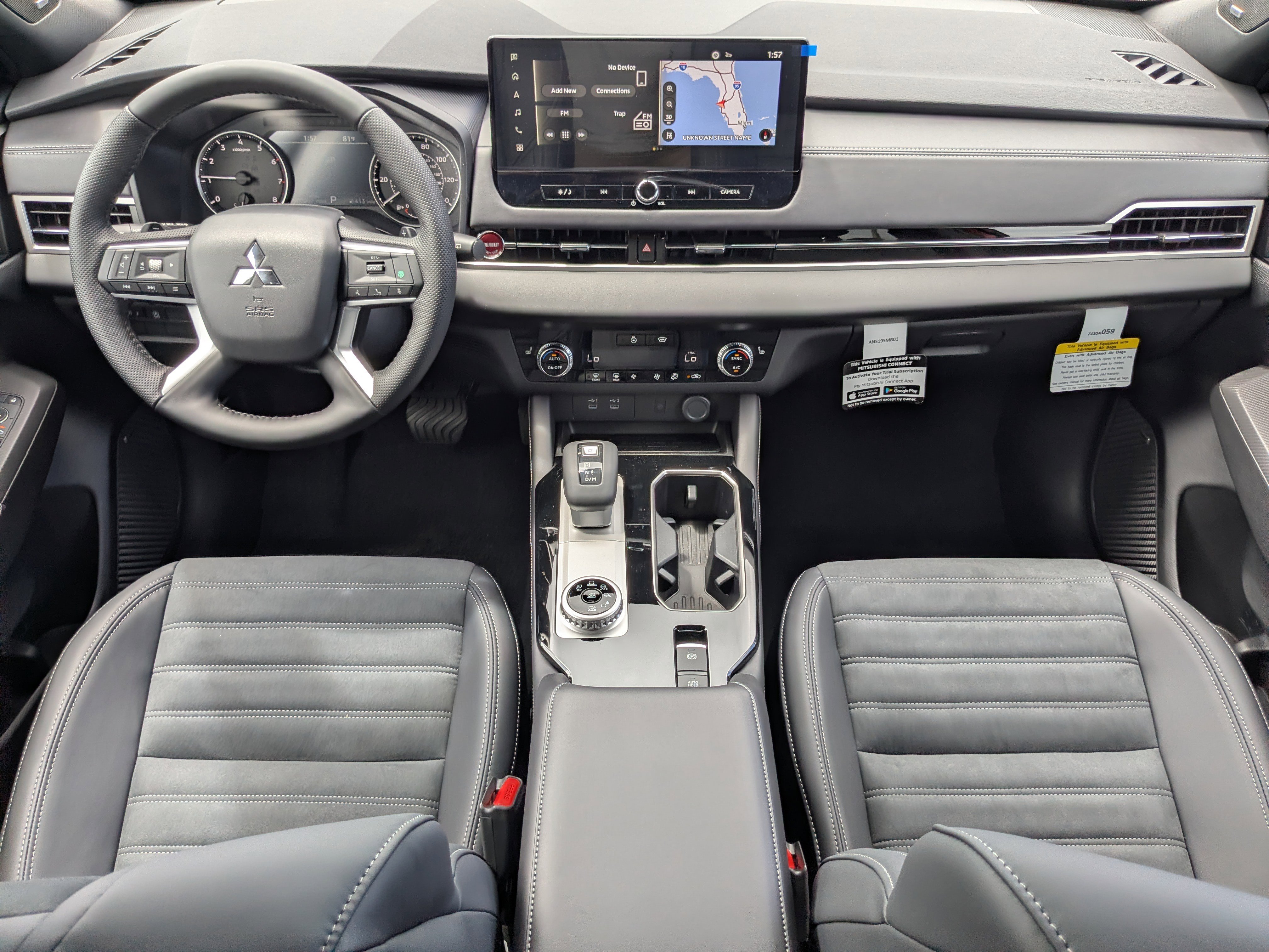 AWD, 3rd row seats: split-bench, 4-Wheel Disc Brakes, 8 Speakers, ABS brakes, Air Conditioning, Alloy wheels, AM/FM radio: SiriusXM, Android Auto & Apple CarPlay, Auto High-beam Headlights, Auto-dimming Rear-View mirror, Automatic temperature control, Brake assist, Bumpers: body-color, Compass, Delay-off headlights, Driver door bin, Driver vanity mirror, Dual front impact airbags, Dual front side impact airbags, Electronic Stability Control, Emergency communication system: Mitsubishi Connect w/ 24-month trial, Exterior Parking Camera Rear, Four wheel independent suspension, Front anti-roll bar, Front Bucket Seats, Front Center Armrest w/Storage, Front dual zone A/C, Front fog lights, Front reading lights, Fully automatic headlights, Headlight cleaning, Heated door mirrors, Heated Front Bucket Seats, Heated front seats, Illuminated entry, Knee airbag, Leather Shift Knob, Leather steering wheel, Low tire pressure warning, Navigation System, Occupant sensing airbag, Outside temperature display, Overhead airbag, Overhead console, Panic alarm, Passenger door bin, Passenger vanity mirror, Power door mirrors, Power driver seat, Power Liftgate, Power steering, Power windows, Radio data system, Radio: AM/FM 12.3" Navigation with Smartphone-Link, Rain sensing wipers, Rear anti-roll bar, Rear seat center armrest, Rear side impact airbag, Rear window defroster, Rear window wiper, Reclining 3rd row seat, Remote keyless entry, Security system, Speed control, Speed-Sensitive Wipers, Split folding rear seat, Spoiler, Steering wheel mounted audio controls, Synthetic Leather Seating Surfaces, Tachometer, Telescoping steering wheel, Tilt steering wheel, Traction control, Trip computer, Turn signal indicator mirrors, Variably intermittent wipers, WE DELIVER ANYWHERE!, SMART FINANCE OPTIONS!, PRICED RIGHT DAILY!, STRESS FREE PAYMENT PLANS FOR EVERYONE!, HOME DELIVERY, CURBSIDE PICKUP! ITS EASY!, INTERNET BUYERS! PLEASE DONT DELAY!, AWD.