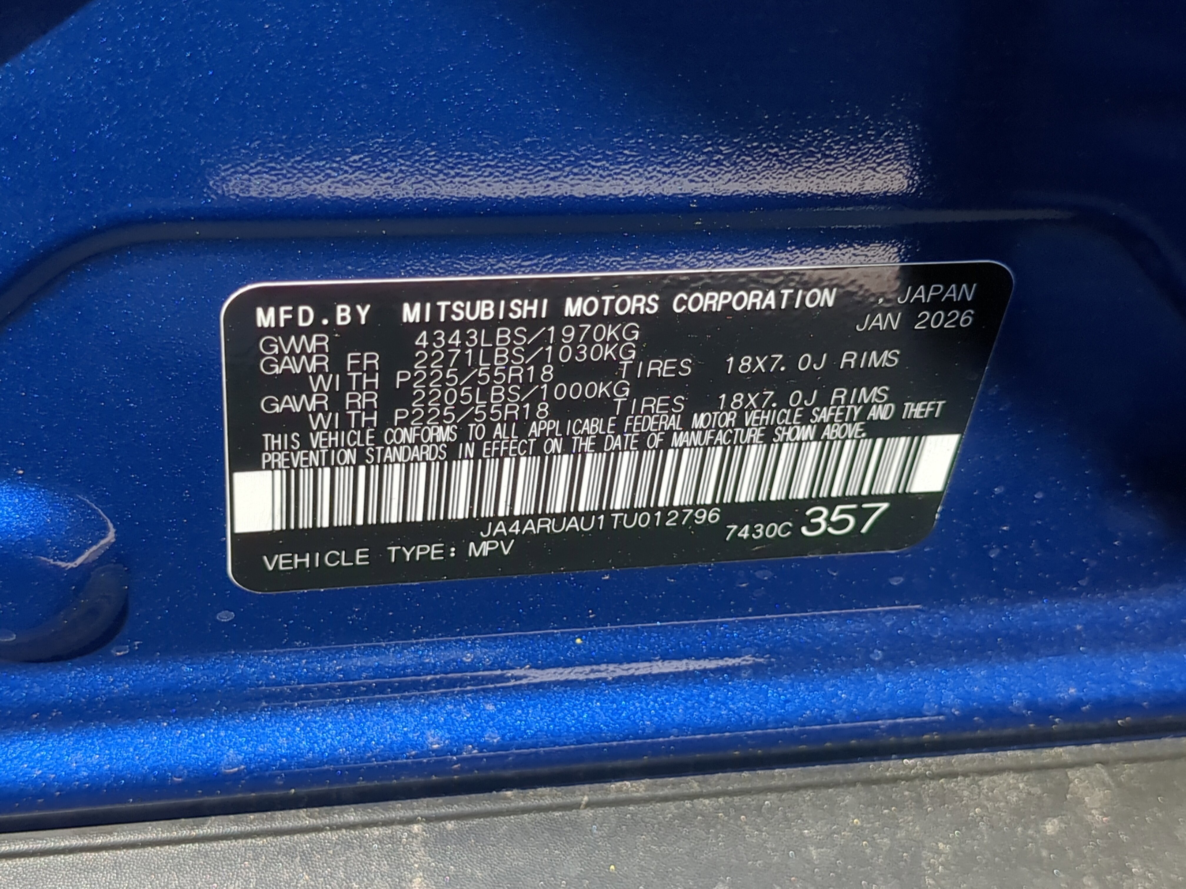 • VIN # JA4ARUAU1TU012796
