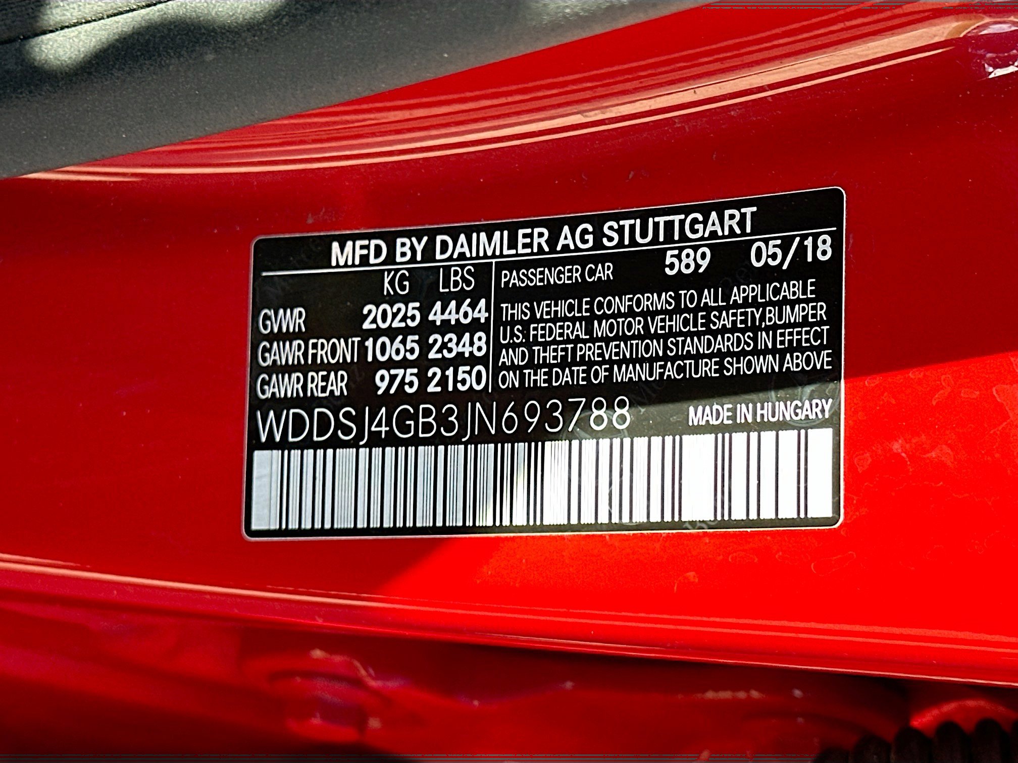 • VIN # WDDSJ4GB3JN693788
