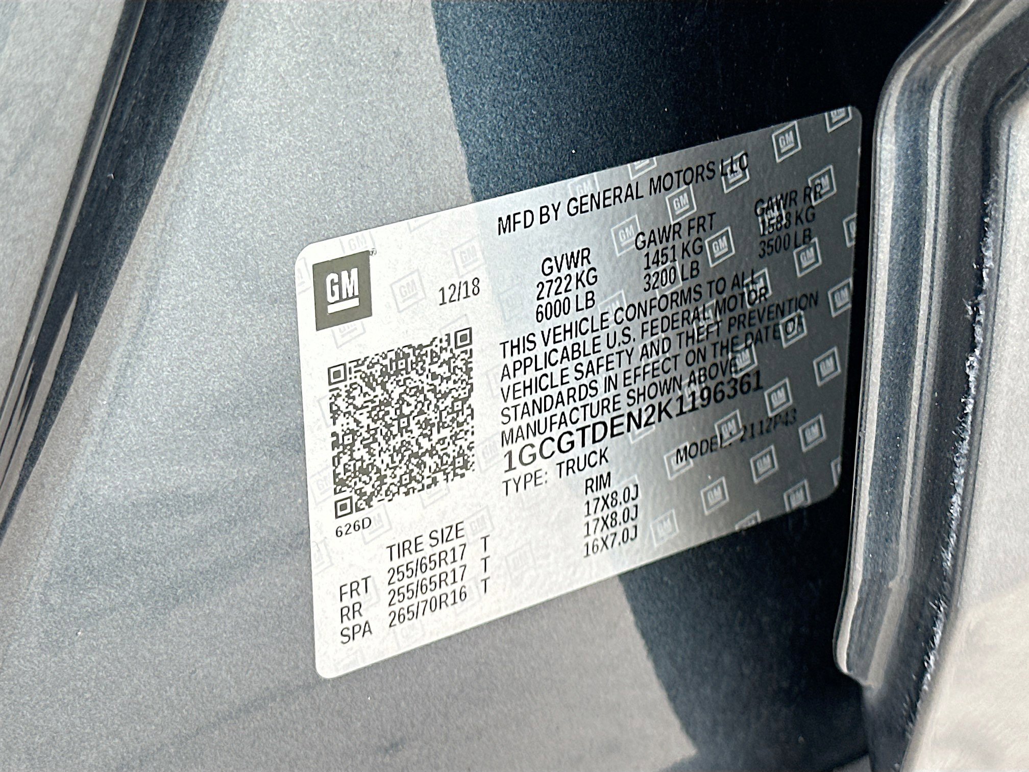 • VIN # 1GCGTDEN2K1196361