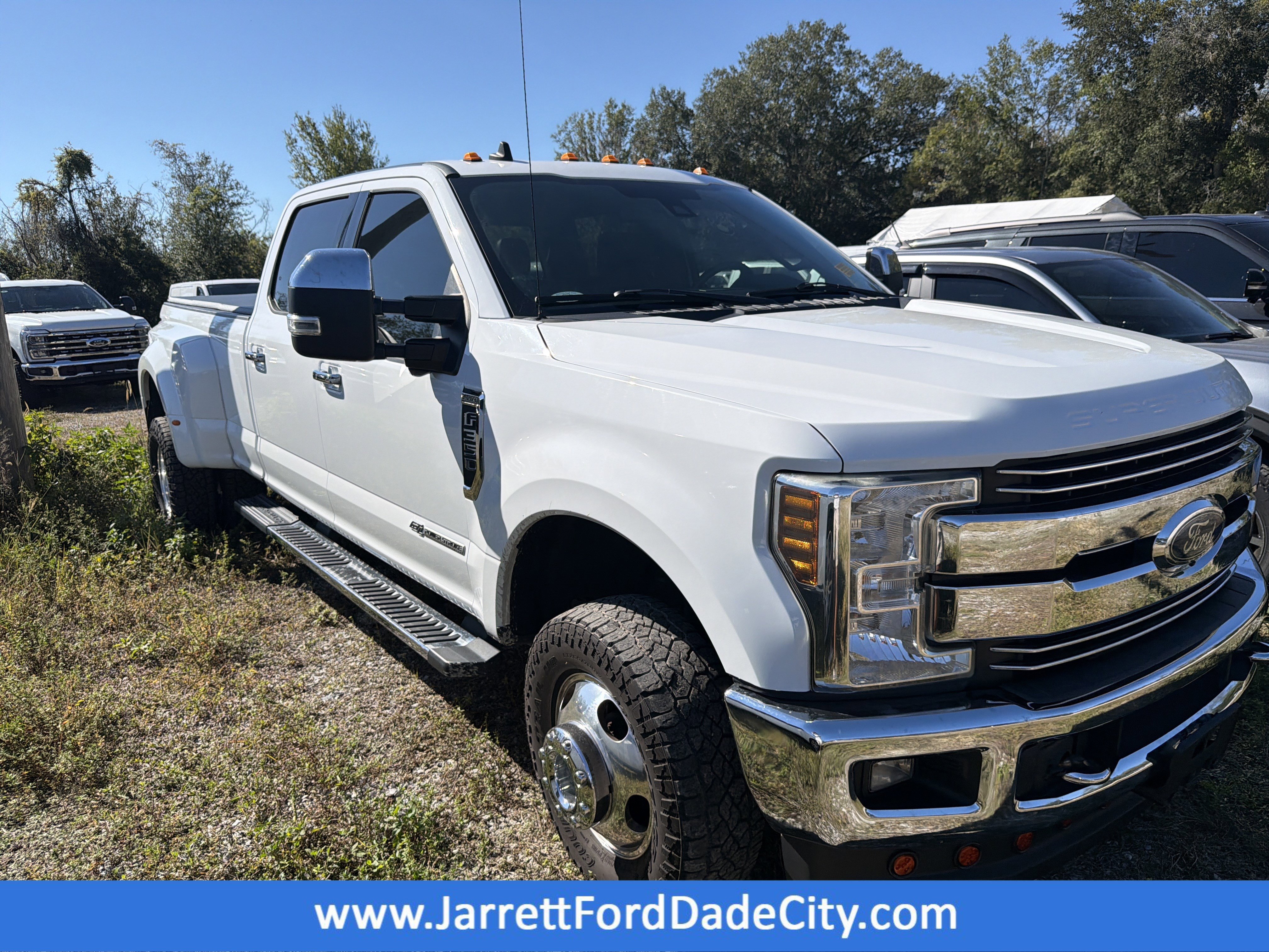 Oxford White 2019 Ford F-350SD Lariat DRW 4WD TorqShift 6-Speed Automatic Power Stroke 6.7L V8 DI 32V OHV Turbodiesel ALLOY WHEELS, BACK UP CAMERA, BEST PRICE, BEST SELECTION!, BLUETOOTH, 4WD, 110V/400W Outlet, 17 Forged Polished Aluminum Wheels, 4-Wheel Disc Brakes, 8-Way Power Driver's Seat, ABS brakes, Air Conditioning, AM/FM radio: SiriusXM, BLIS Blind Spot Information System, Brake assist, Chrome Front & Rear Bumpers, Chrome Front Bumper, Delay-off headlights, Dual Extra Heavy-Duty Alternators (Total 377-Amps), Dual front impact airbags, Dual front side impact airbags, Dual rear wheels, Electronic Stability Control, Engine Block Heater, Exterior Parking Camera Rear, Front anti-roll bar, Front reading lights, Fully automatic headlights, FX4 Off-Road Package, GVWR: 14,000 lb Payload Package, Heated Rear Seats, Hill Descent Control, Limited Slip w/4.10 Axle Ratio, Low tire pressure warning, Navigation System, Off-Road Specifically Tuned Shock Absorbers, Outside temperature display, Overhead airbag, Overhead console, Passenger vanity mirror, Power driver seat, Power Front & Rear Seat Windows, Power Locks, Power steering, Power-Sliding Rear-Window w/Defrost, Rear anti-roll bar, Rear reading lights, Rear step bumper, SiriusXM Radio, Split folding rear seat, SYNC 3 Communications & Entertainment System, Tachometer, Telescoping steering wheel, Tilt steering wheel, Traction control, Trip computer, Unique FX4 Off-Road Box Decal.