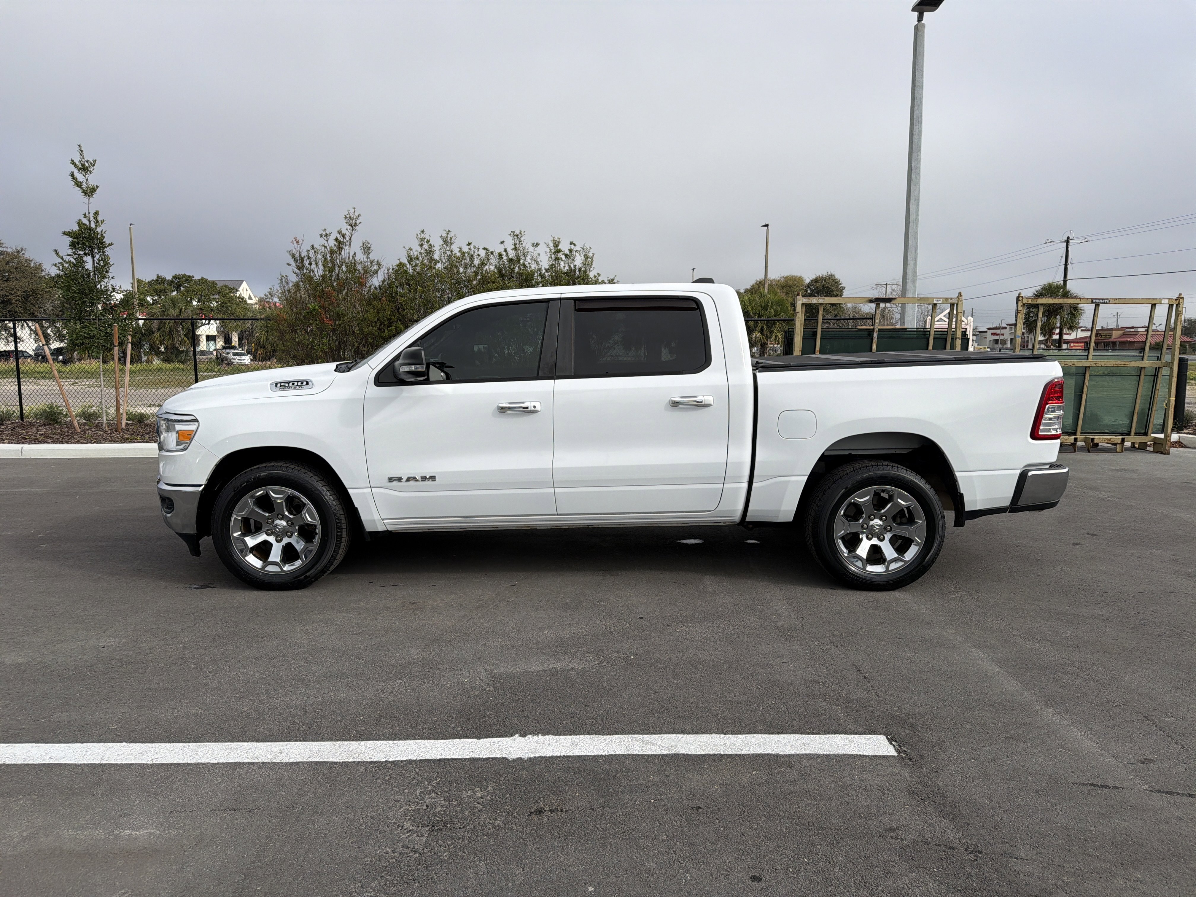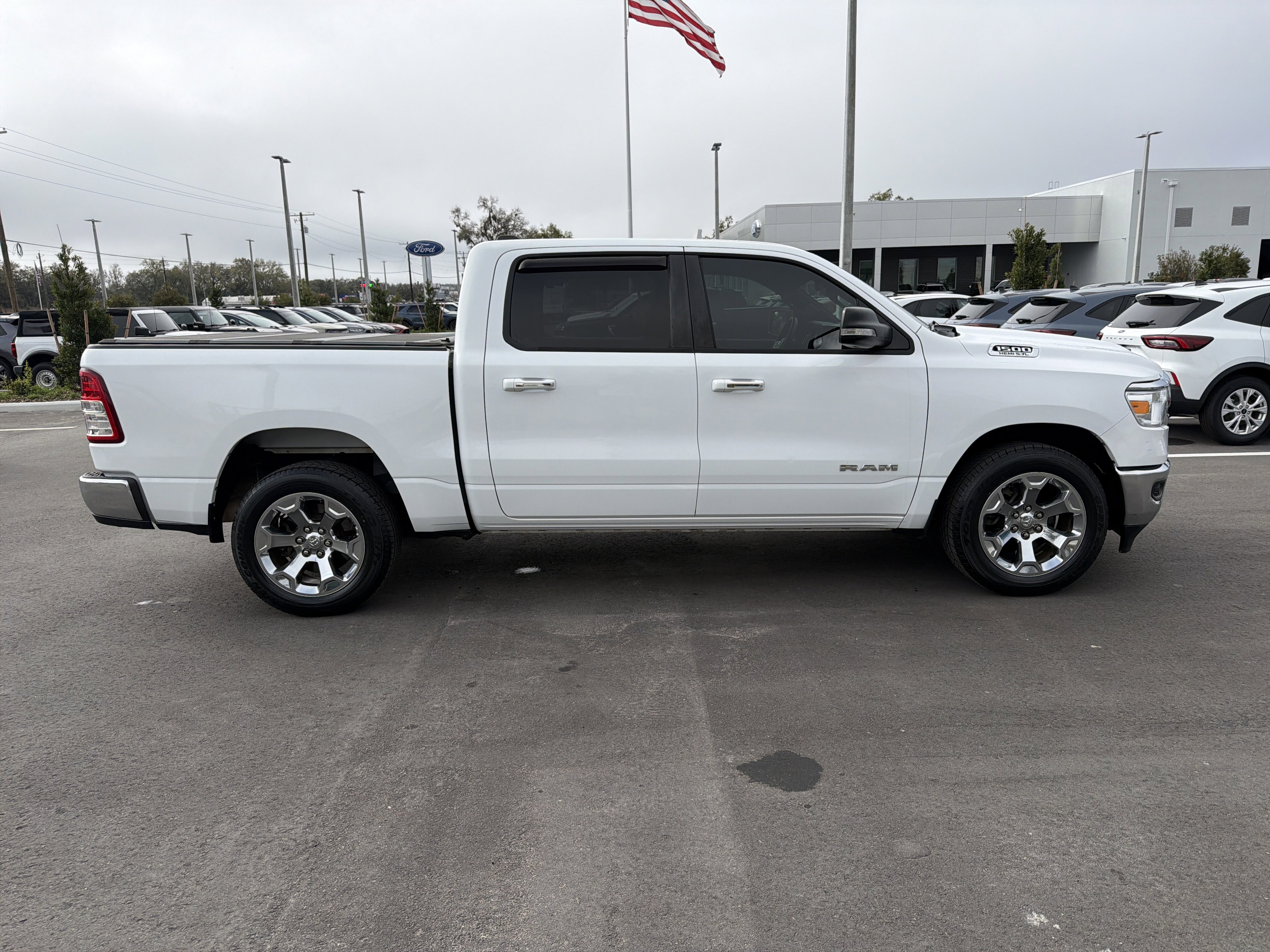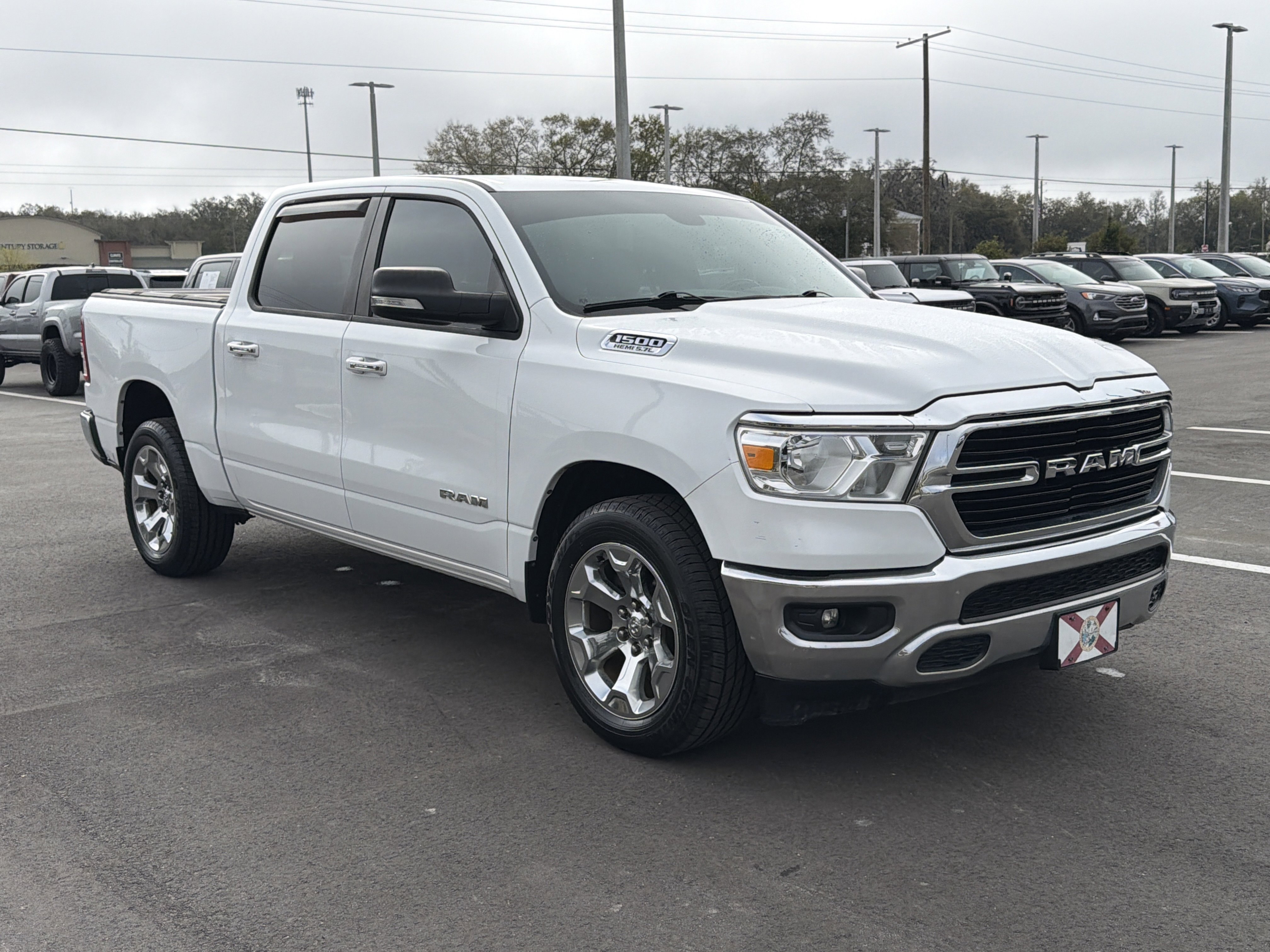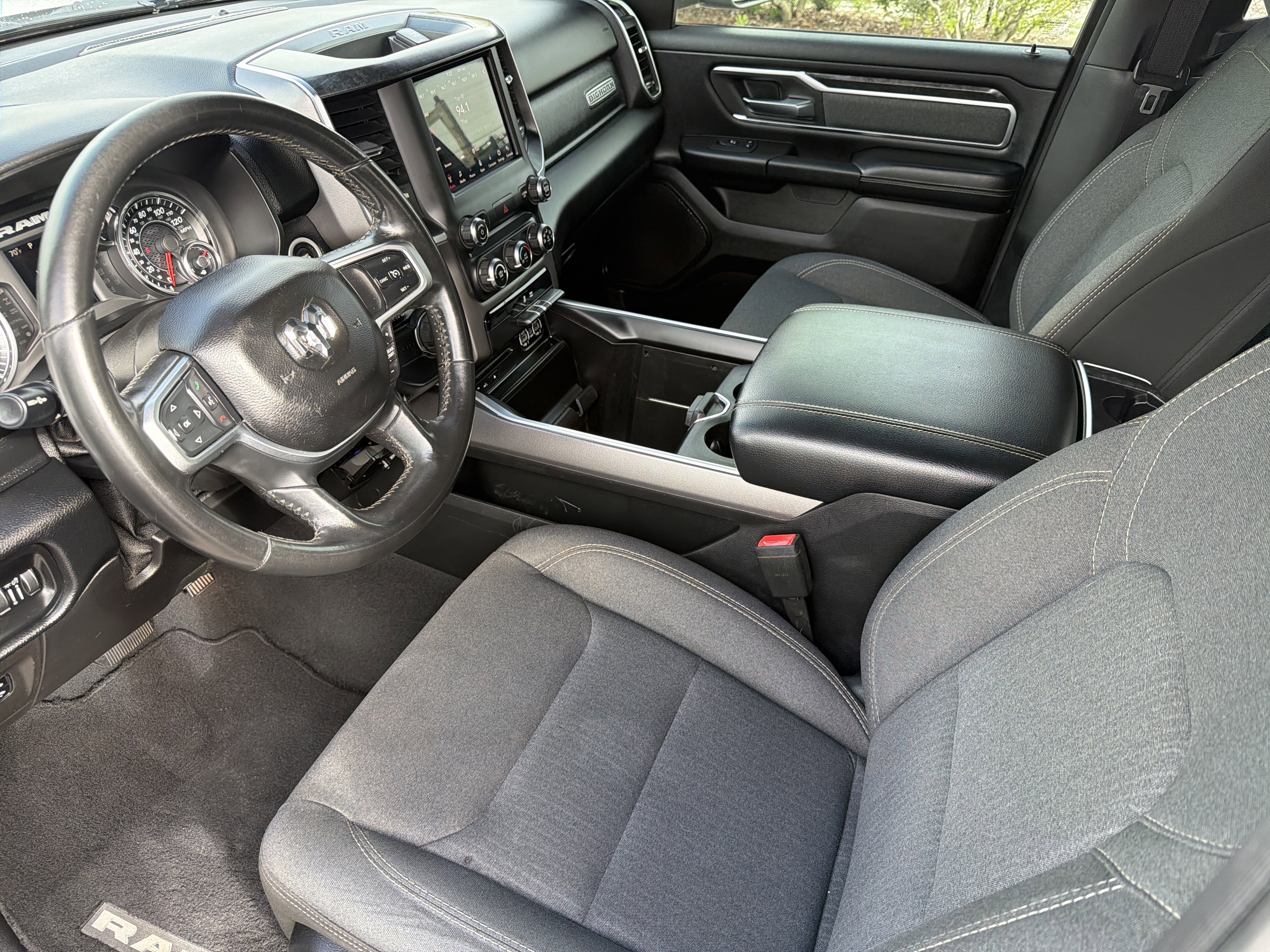 Bright White Clearcoat 2019 Ram 1500 Big Horn/Lone Star RWD 8-Speed Automatic HEMI 5.7L V8 Multi Displacement VVT ALLOY WHEELS, BACK UP CAMERA, BEST PRICE, BEST SELECTION!, 3 Rear Seat Head Restraints, 4 Adjustable Cargo Tie-Down Hooks, 4 Way Front Headrests, 4-Wheel Disc Brakes, 48V Belt Starter Generator, 6 Speakers, ABS brakes, Air Conditioning, AM/FM radio, Anti-Spin Differential Rear Axle, Auto-Dimming Rear-View Mirror, Big Horn IP Badge, Big Horn Level 1 Equipment Group, Brake assist, Bumpers: chrome, Class IV Receiver Hitch, Cloth Bench Seat, Cluster 3.5 TFT Color Display, Compass, Delay-off headlights, Driver door bin, Dual front impact airbags, Dual front side impact airbags, Electronic Stability Control, Exterior Mirrors w/Supplemental Signals, Foam Bottle Insert (Door Trim Panel), Front anti-roll bar, Front Center Armrest w/Storage, Front fog lights, Front reading lights, Front Seat Back Map Pockets, Front wheel independent suspension, Fully automatic headlights, Glove Box Lamp, GPS Antenna Input, Heated door mirrors, Illuminated entry, Leather steering wheel, Low tire pressure warning, Occupant sensing airbag, Outside temperature display, Overhead airbag, Overhead console, Panic alarm, ParkView Rear Back-Up Camera, Passenger door bin, Passenger vanity mirror, Power 4-Way Driver Lumbar Adjust, Power 8-Way Driver Seat, Power Adjustable Pedals, Power door mirrors, Power Heated Fold Away Mirrors, Power steering, Power windows, Quick Order Package 24Z Big Horn/Lone Star (DISC), Radio data system, Radio: Uconnect 3 w/5 Display, Radio: Uconnect 4 w/8.4 Display, Rear 60/40 Folding Seat, Rear anti-roll bar, Rear Dome w/On/Off Switch Lamp, Rear Power Sliding Window, Rear seat center armrest, Rear step bumper, Rear Window Defroster, Remote keyless entry, Single Disc Remote CD Player, SiriusXM Satellite Radio, Speed control, Split folding rear seat, Steering Wheel Mounted Audio Controls, Sun Visors w/Illuminated Vanity Mirrors, Tachometer, Telescoping steering wheel, Tilt steering wheel, Traction control, Trip computer, Universal Garage Door Opener, Variably intermittent wipers, Voltmeter, Wheels: 20 x 9 Aluminum Chrome Clad.