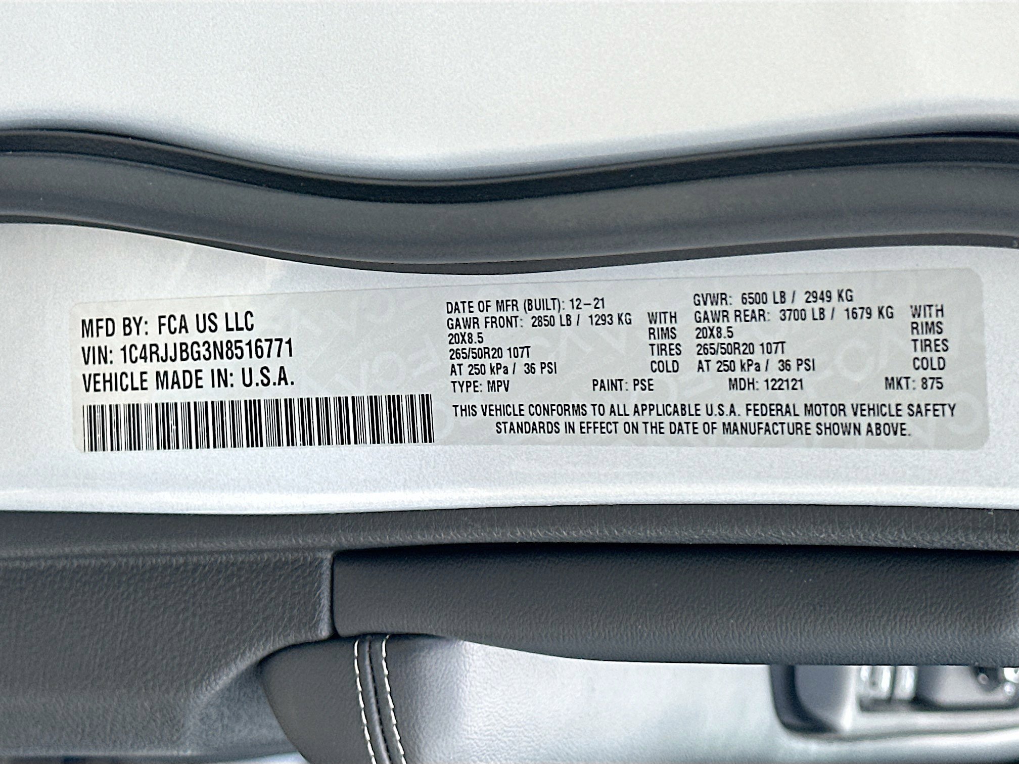 • VIN # 1C4RJJBG3N8516771