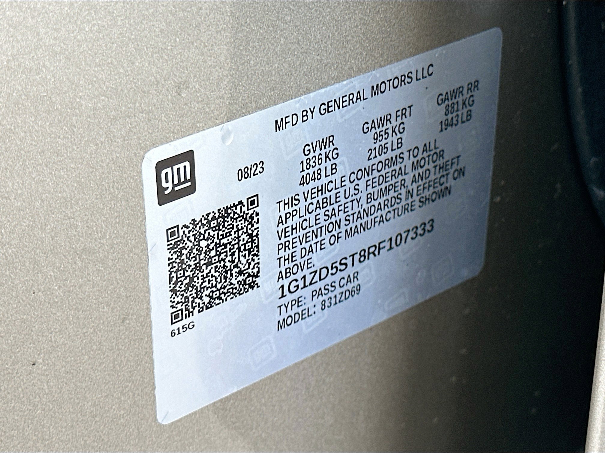 • VIN # 1G1ZD5ST8RF107333