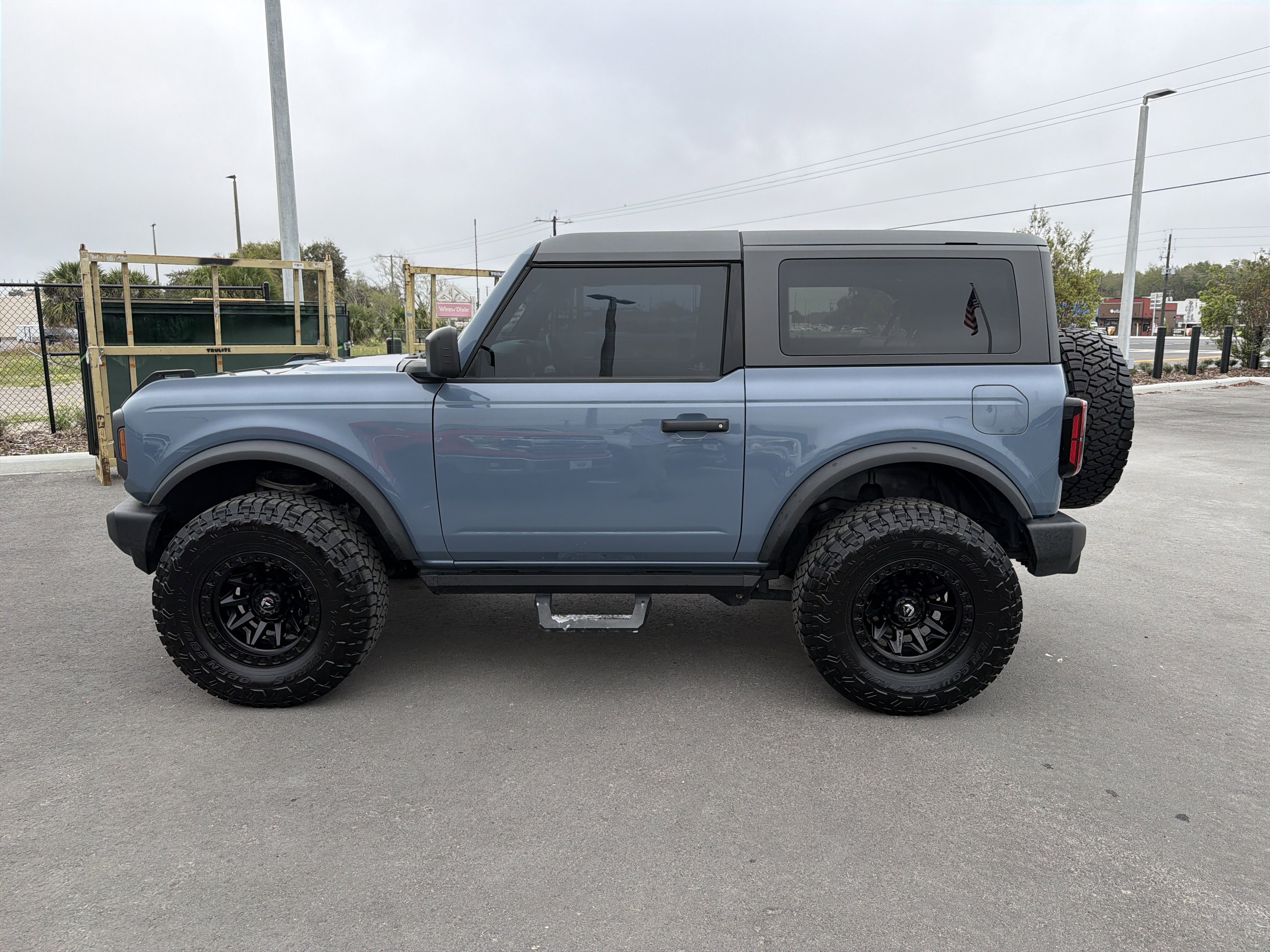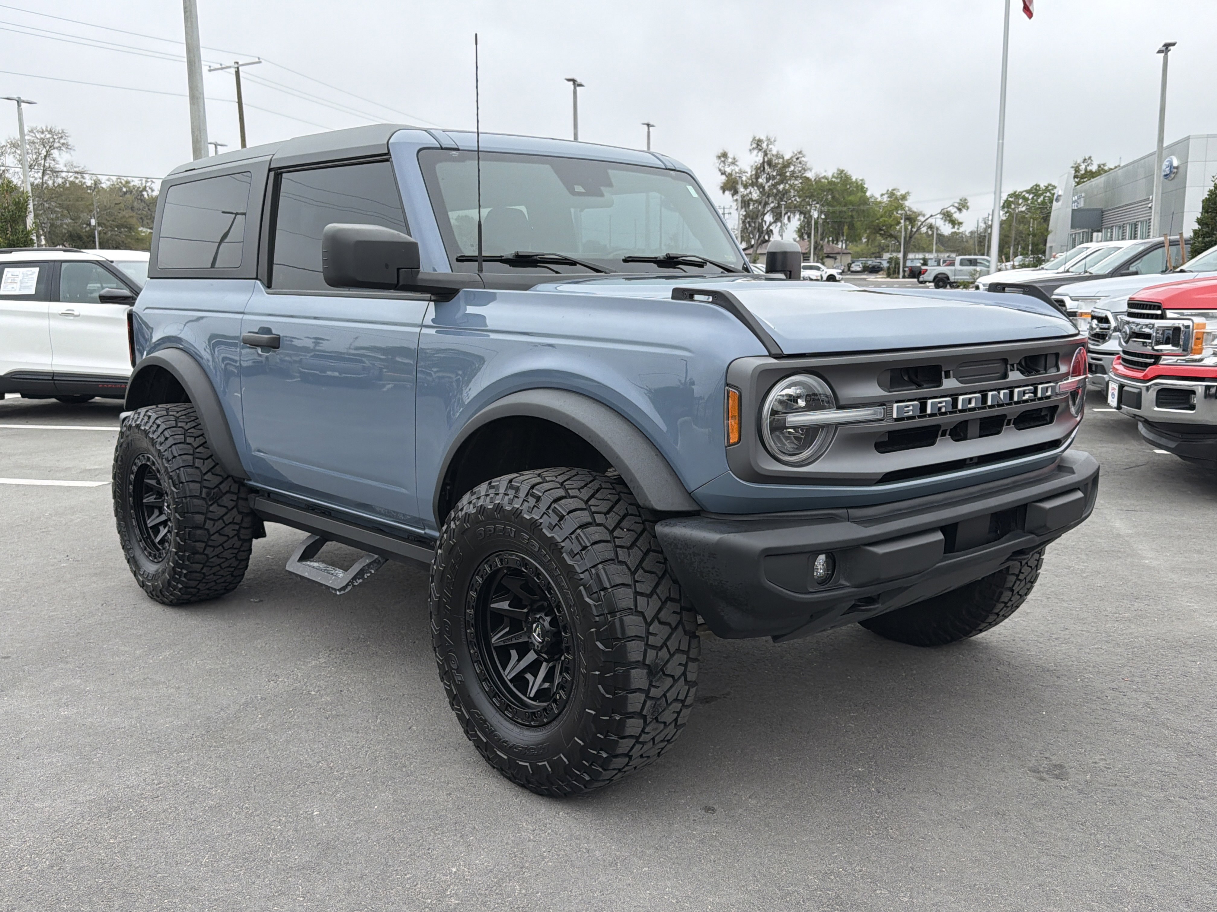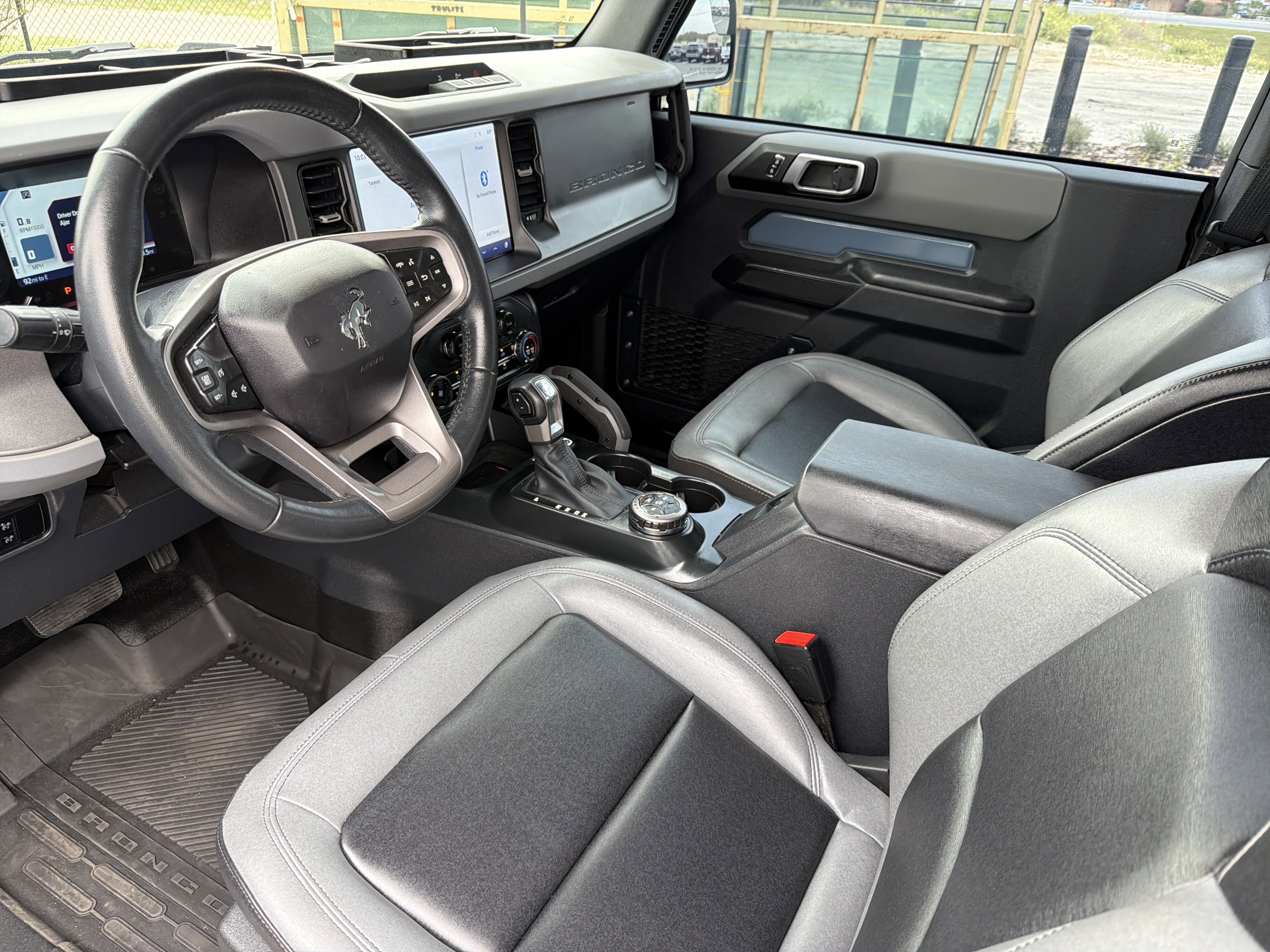 Azure Gray Metallic Tri-Coat 2024 Ford Bronco Big Bend 4WD 10-Speed Automatic 2.3L EcoBoost I-4 4-Wheel Disc Brakes, 4.46 Axle Ratio, 7 Speakers, ABS brakes, Air Conditioning, AM/FM radio: SiriusXM with 360L, AM/FM Stereo, Auto High-beam Headlights, Brake assist, Compass, Convertible HardTop, Convertible roof lining, Delay-off headlights, Driver door bin, Driver vanity mirror, Dual front impact airbags, Dual front side impact airbags, Electronic Stability Control, Emergency communication system: 911 Assist, Equipment Group 221A Standard Package, Exterior Parking Camera Rear, Front anti-roll bar, Front Bucket Seats, Front Center Armrest, Front fog lights, Front License Plate Bracket, Front reading lights, Front wheel independent suspension, Fully automatic headlights, Glass rear window, Heated door mirrors, High Clearance Suspension, Illuminated entry, Integrated roll-over protection, Leather Shift Knob, LED Signature Lighting, Low tire pressure warning, Marine Grade Vinyl Bucket Seats, Navigation Removal, Occupant sensing airbag, Outside temperature display, Overhead airbag, Overhead console, Panic alarm, Passenger door bin, Passenger vanity mirror, Power door mirrors, Power steering, Power windows, Radio data system, Rear window defroster, Rear window wiper, Remote keyless entry, Security system, SiriusXM Radio w/360L, Speed control, Split folding rear seat, Steering wheel mounted audio controls, SYNC 4, Tachometer, Telescoping steering wheel, Tilt steering wheel, Traction control, Trip computer, Variably intermittent wipers, Wheels: 17 Carbonized Gray-Painted Aluminum.