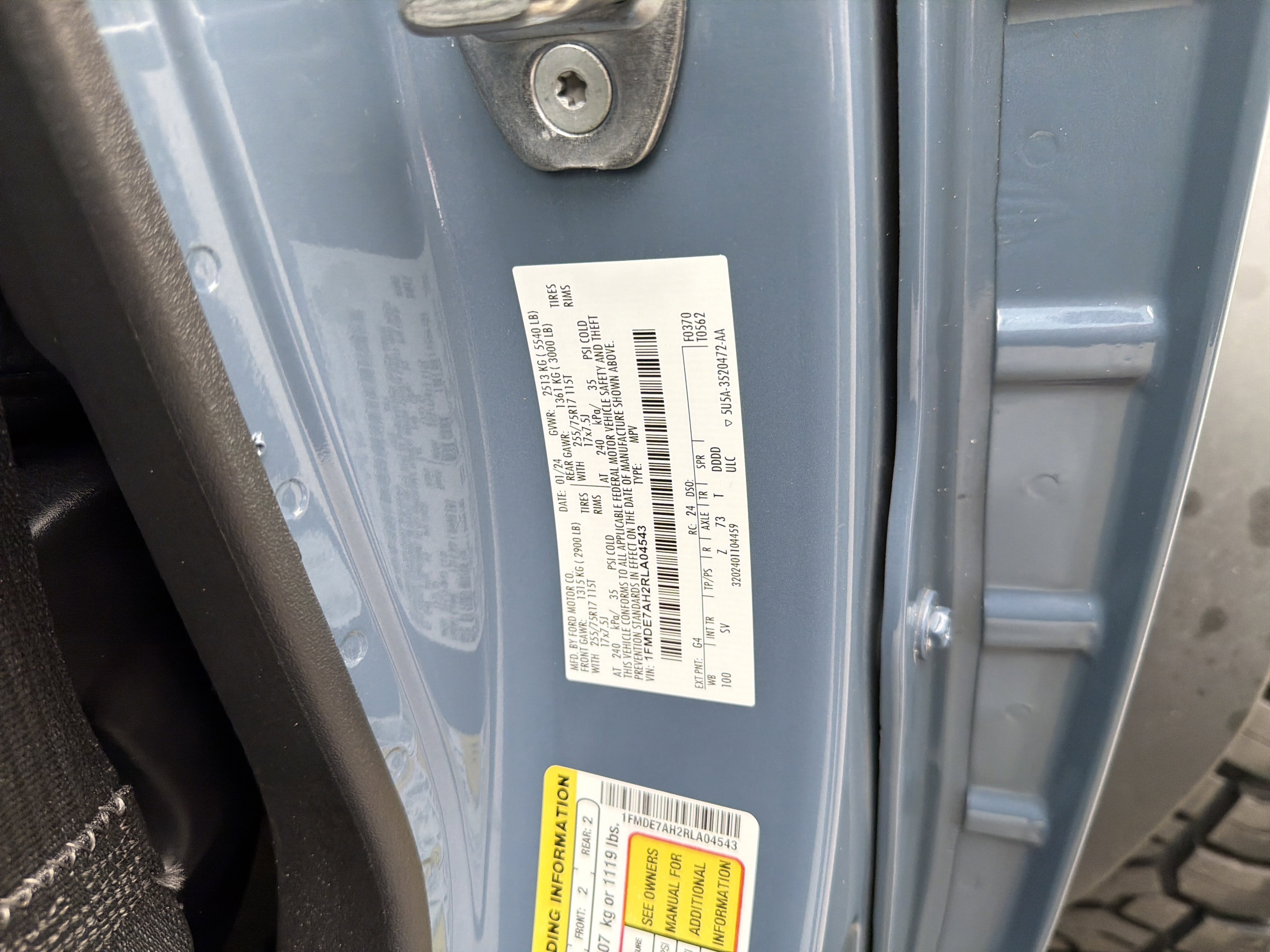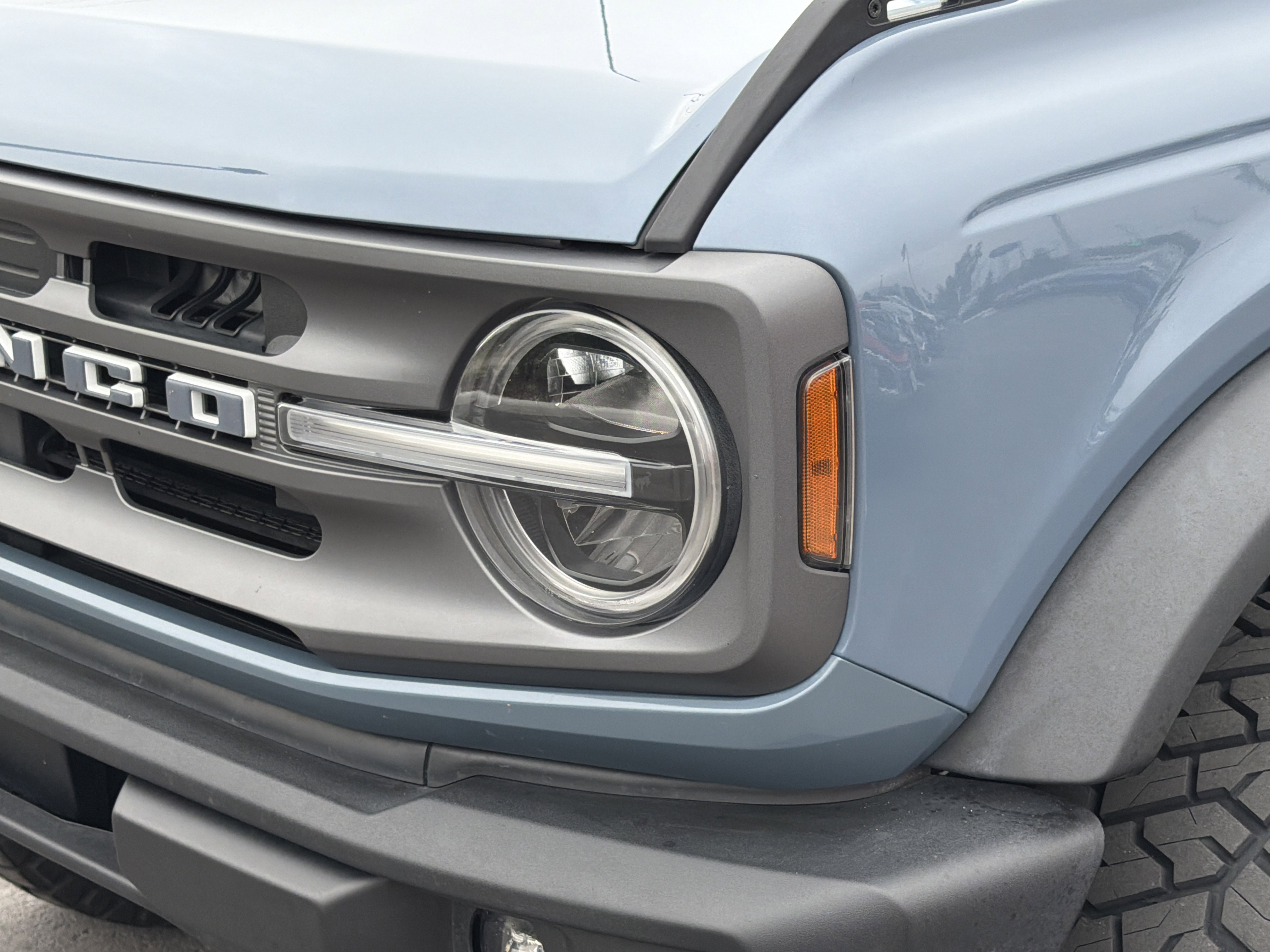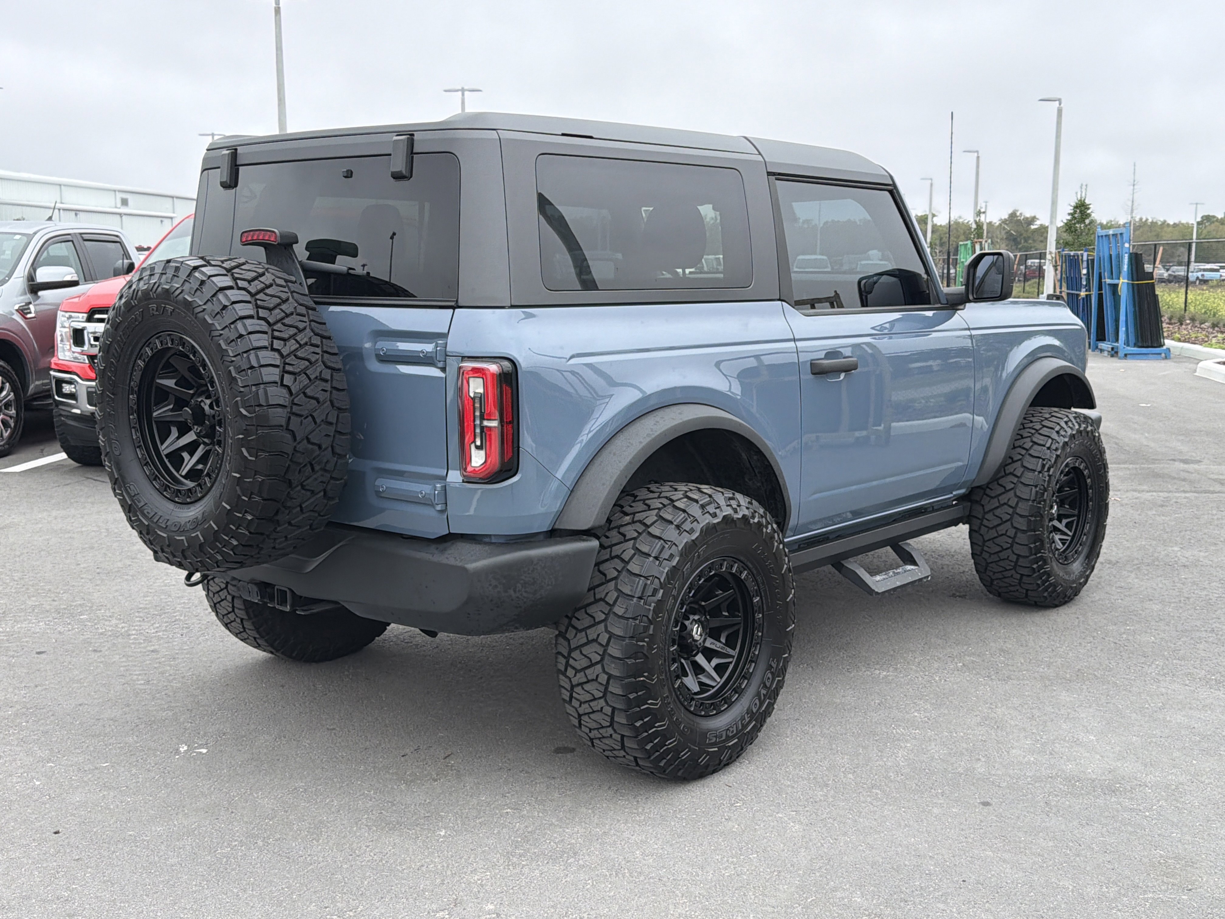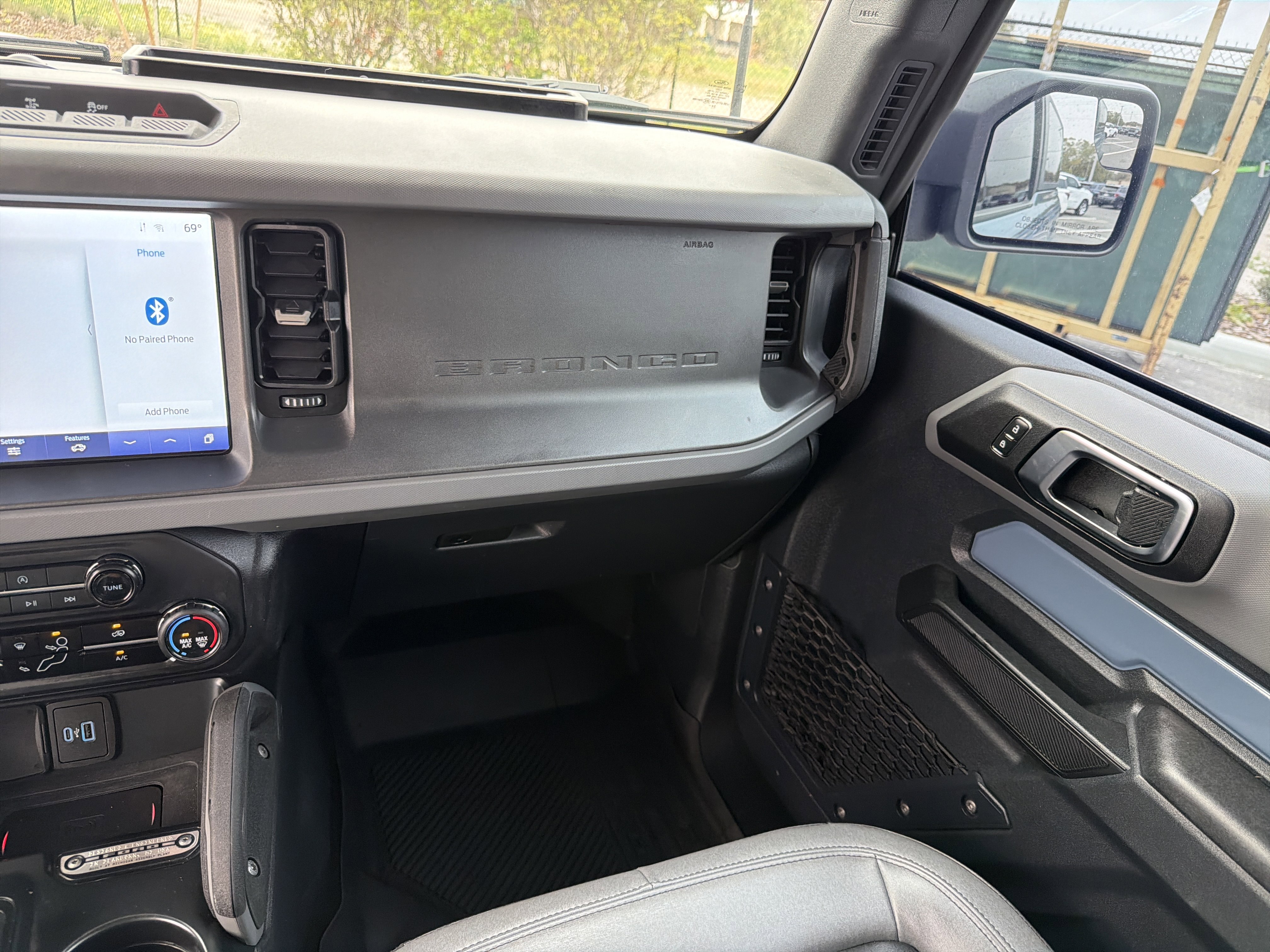Azure Gray Metallic Tri-Coat 2024 Ford Bronco Big Bend 4WD 10-Speed Automatic 2.3L EcoBoost I-4 4-Wheel Disc Brakes, 4.46 Axle Ratio, 7 Speakers, ABS brakes, Air Conditioning, AM/FM radio: SiriusXM with 360L, AM/FM Stereo, Auto High-beam Headlights, Brake assist, Compass, Convertible HardTop, Convertible roof lining, Delay-off headlights, Driver door bin, Driver vanity mirror, Dual front impact airbags, Dual front side impact airbags, Electronic Stability Control, Emergency communication system: 911 Assist, Equipment Group 221A Standard Package, Exterior Parking Camera Rear, Front anti-roll bar, Front Bucket Seats, Front Center Armrest, Front fog lights, Front License Plate Bracket, Front reading lights, Front wheel independent suspension, Fully automatic headlights, Glass rear window, Heated door mirrors, High Clearance Suspension, Illuminated entry, Integrated roll-over protection, Leather Shift Knob, LED Signature Lighting, Low tire pressure warning, Marine Grade Vinyl Bucket Seats, Navigation Removal, Occupant sensing airbag, Outside temperature display, Overhead airbag, Overhead console, Panic alarm, Passenger door bin, Passenger vanity mirror, Power door mirrors, Power steering, Power windows, Radio data system, Rear window defroster, Rear window wiper, Remote keyless entry, Security system, SiriusXM Radio w/360L, Speed control, Split folding rear seat, Steering wheel mounted audio controls, SYNC 4, Tachometer, Telescoping steering wheel, Tilt steering wheel, Traction control, Trip computer, Variably intermittent wipers, Wheels: 17 Carbonized Gray-Painted Aluminum.