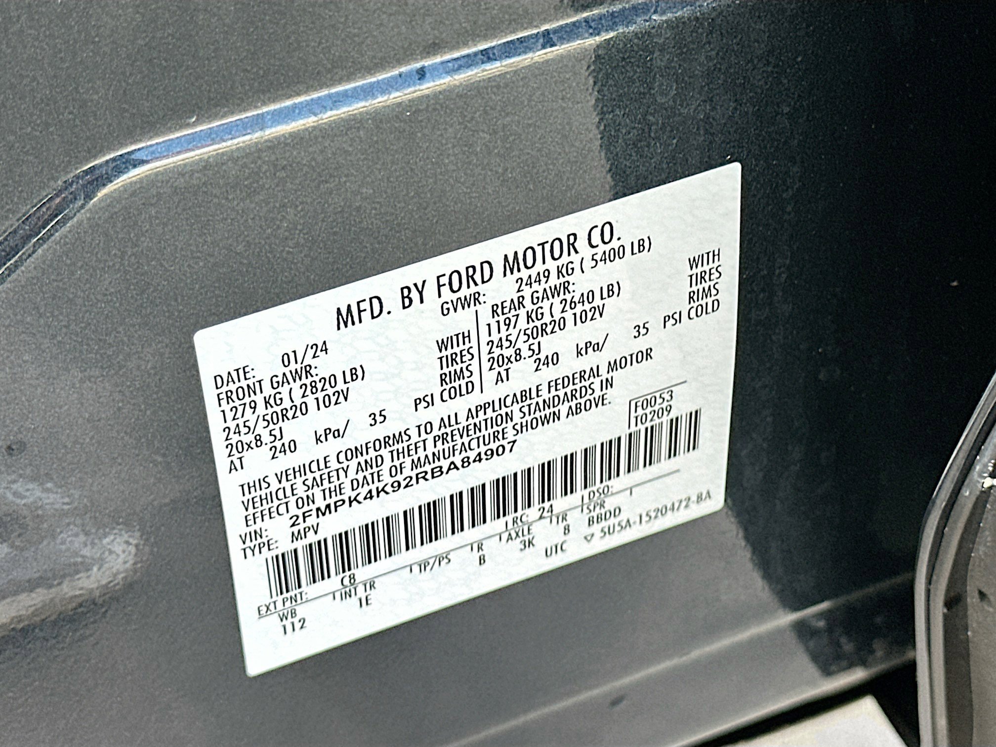 • VIN # 2FMPK4K92RBA84907