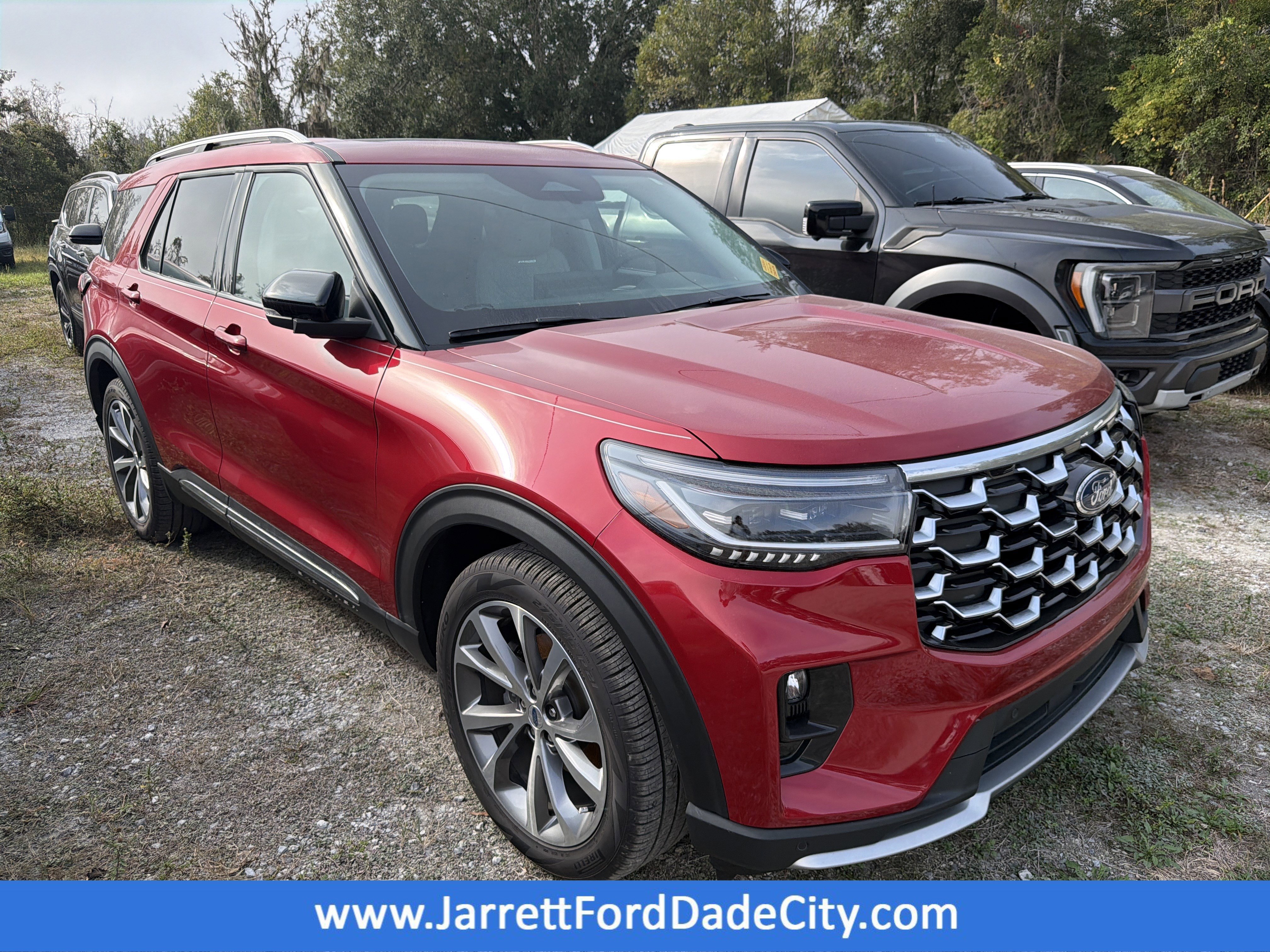 Red Metallic 2025 Ford Explorer Platinum RWD 10-Speed Automatic 3.0L EcoBoost V6 14 Speakers, 3.58 Non-Limited Slip Rear Axle, 3rd row seats: bench, 4-Wheel Disc Brakes, ABS brakes, Active Cruise Control, Air Conditioning, AM/FM radio: SiriusXM with 360L, Auto High-beam Headlights, Auto-dimming door mirrors, Automatic temperature control, Brake assist, Bumpers: body-color, Delay-off headlights, Dual front impact airbags, Dual front side impact airbags, Electronic Stability Control, Emergency communication system: 911 Assist, Equipment Group 600A Standard Package, Exterior Parking Camera Rear, Ford BlueCruise Equipped (1-Year Plan) (DISC), Four wheel independent suspension, Front anti-roll bar, Front Bucket Seats, Front Center Armrest, Front dual zone A/C, Front fog lights, Fully automatic headlights, Heated door mirrors, Heated front seats, Heated rear seats, Knee airbag, Leather Seating Surfaces Sport Captain Chairs, Low tire pressure warning, Lux Leather Package, Memory seat, Navigation System, Occupant sensing airbag, Overhead airbag, Panic alarm, Passenger door bin, Platinum Badges on Front Row Seats, Power door mirrors, Power driver seat, Power Liftgate, Power moonroof, Power passenger seat, Power steering, Power windows, Quilting & Stitching on Door Panels, Quilting & Stitching on Seats, Radio data system, Radio: B&O Sound System by Bang & Olufsen w/HD, Rain sensing wipers, Rear air conditioning, Rear anti-roll bar, Rear window defroster, Rear window wiper, Remote keyless entry, Speed control, Speed-sensing steering, Speed-Sensitive Wipers, Split folding rear seat, Spoiler, Steering wheel mounted audio controls, Tachometer, Telescoping steering wheel, Tilt steering wheel, Traction control, Trip computer, Turn signal indicator mirrors, Variably intermittent wipers, Ventilated front seats, Wheels: 20 Luster Nickel-Painted Aluminum.