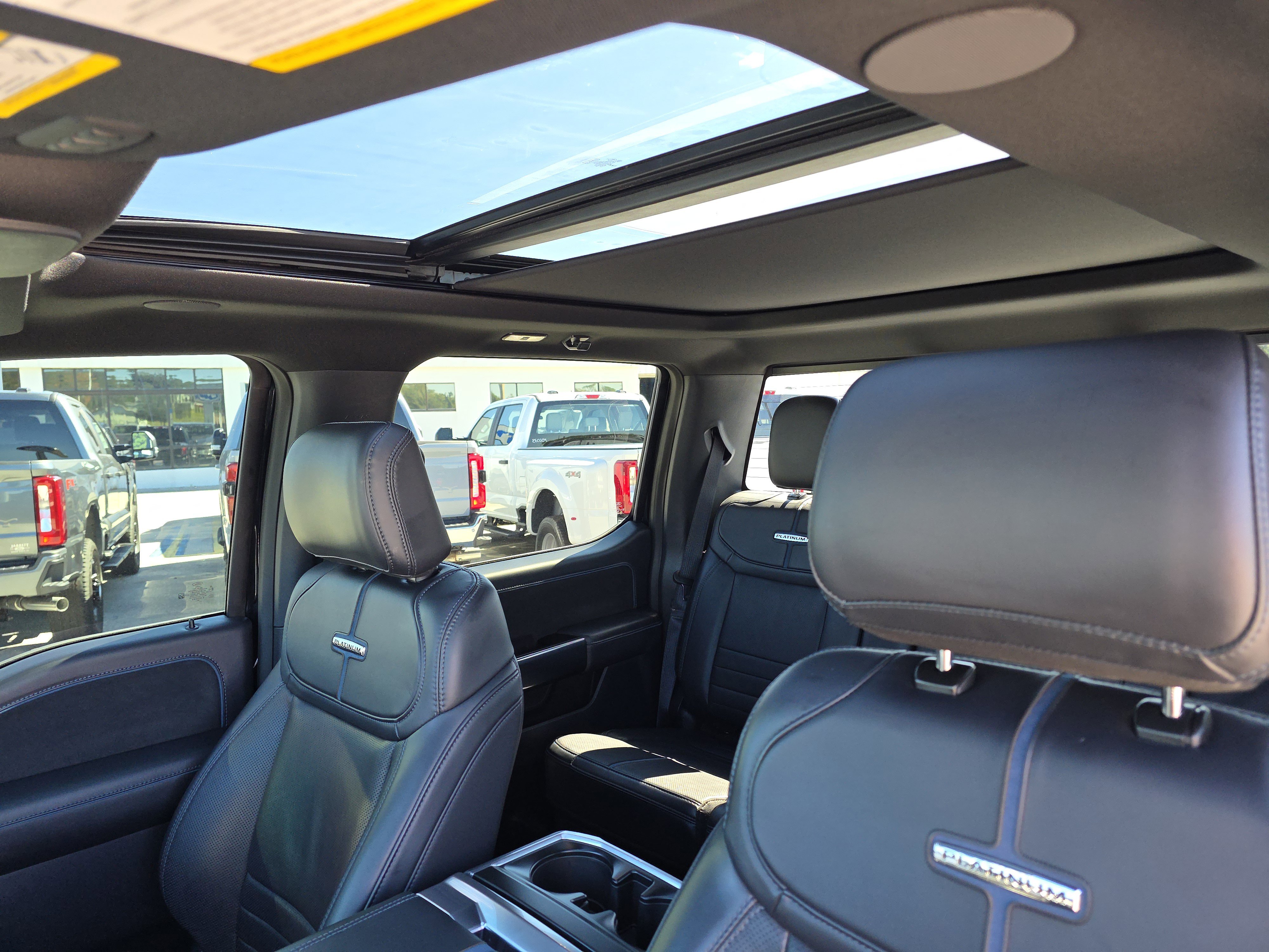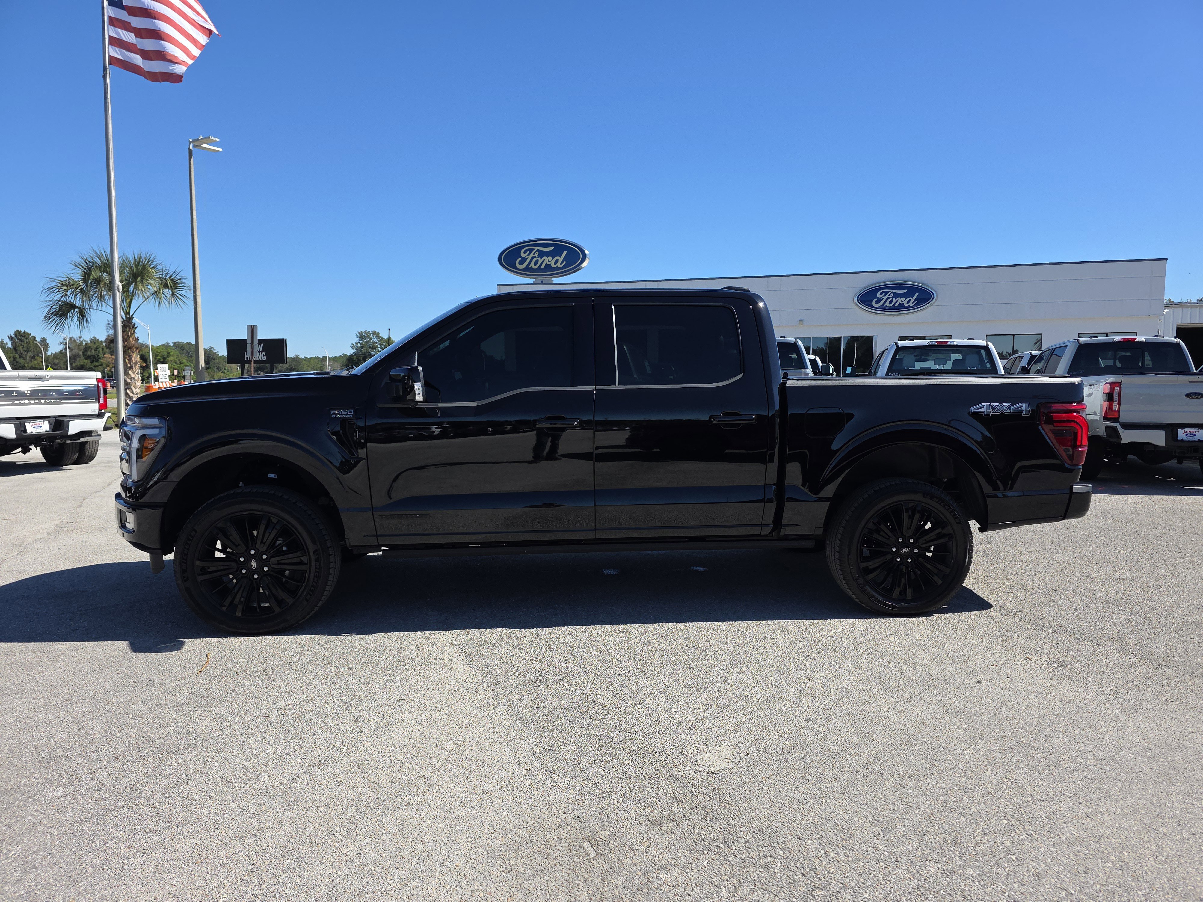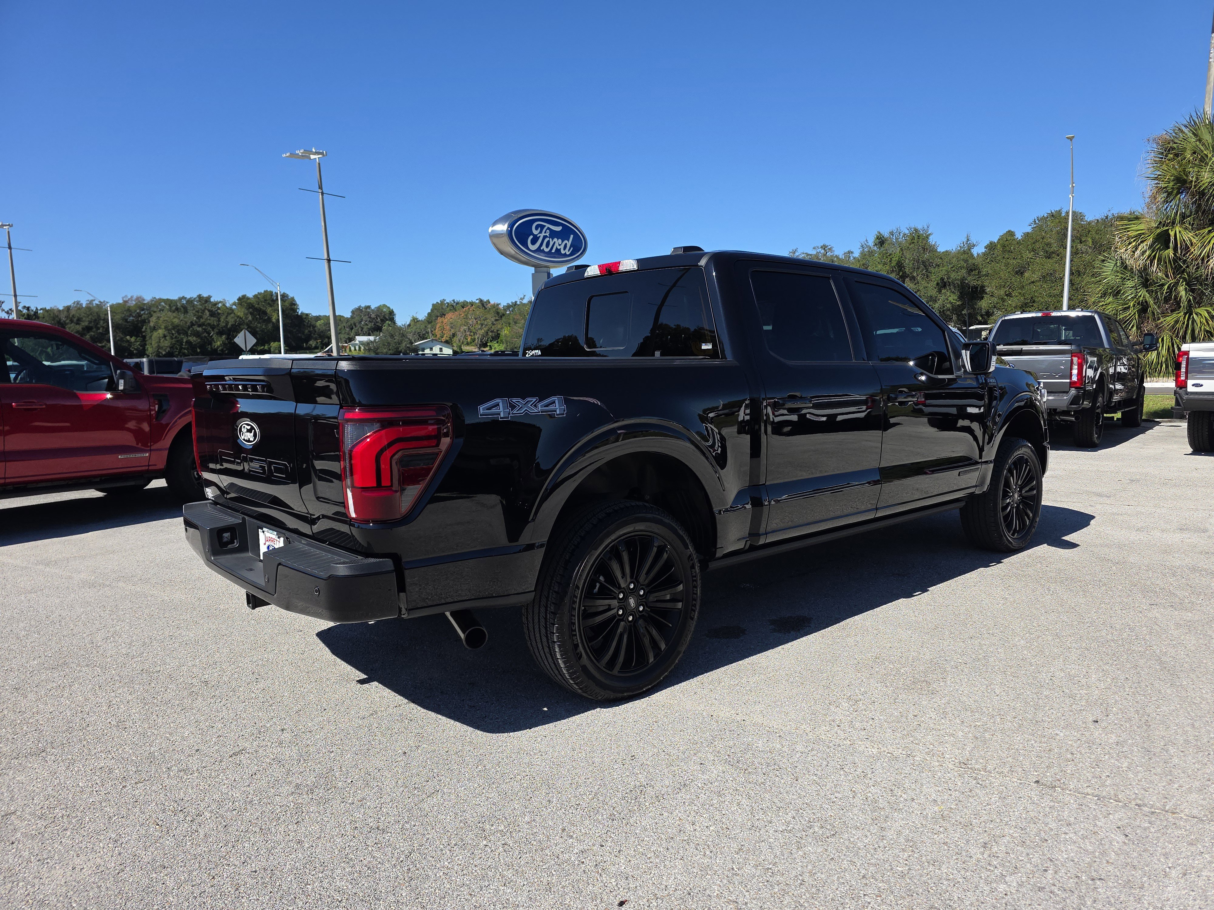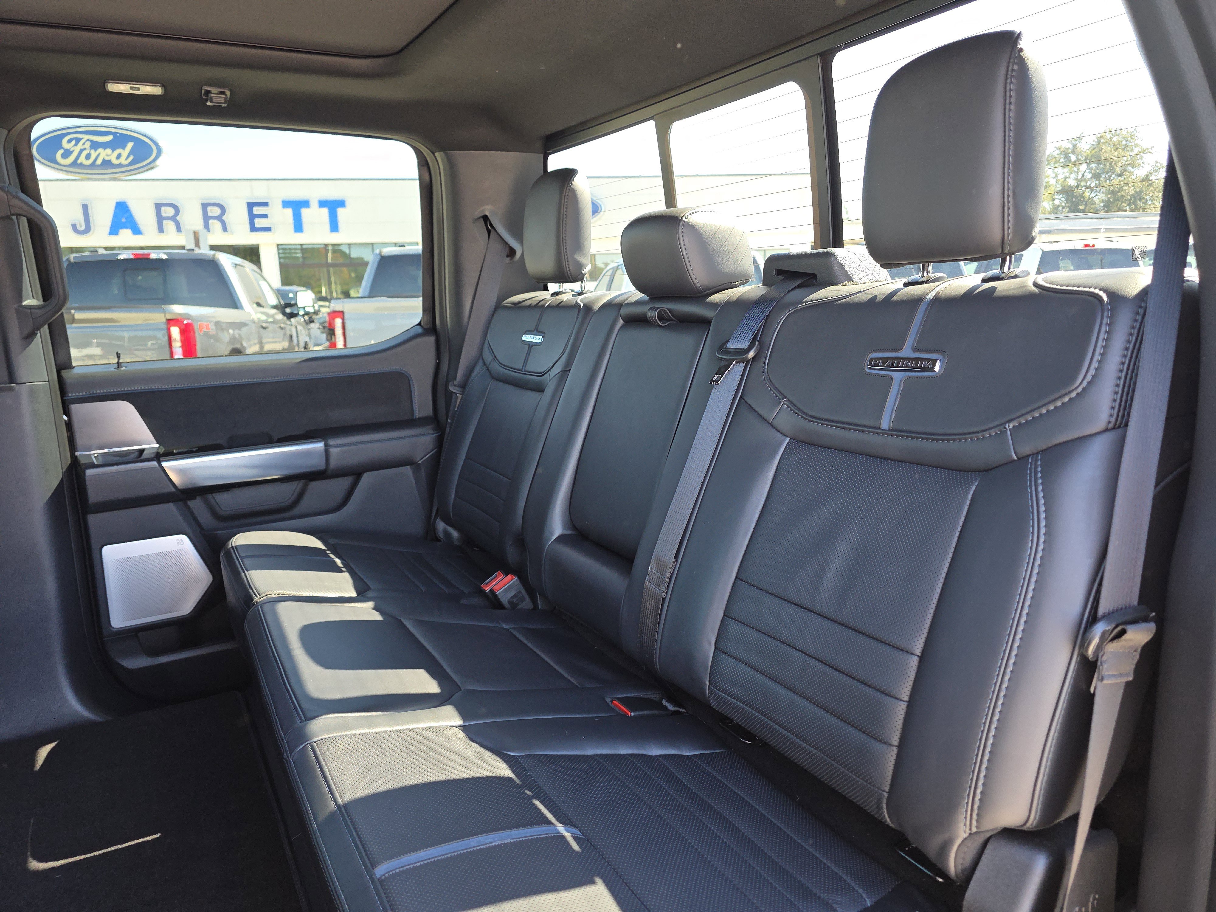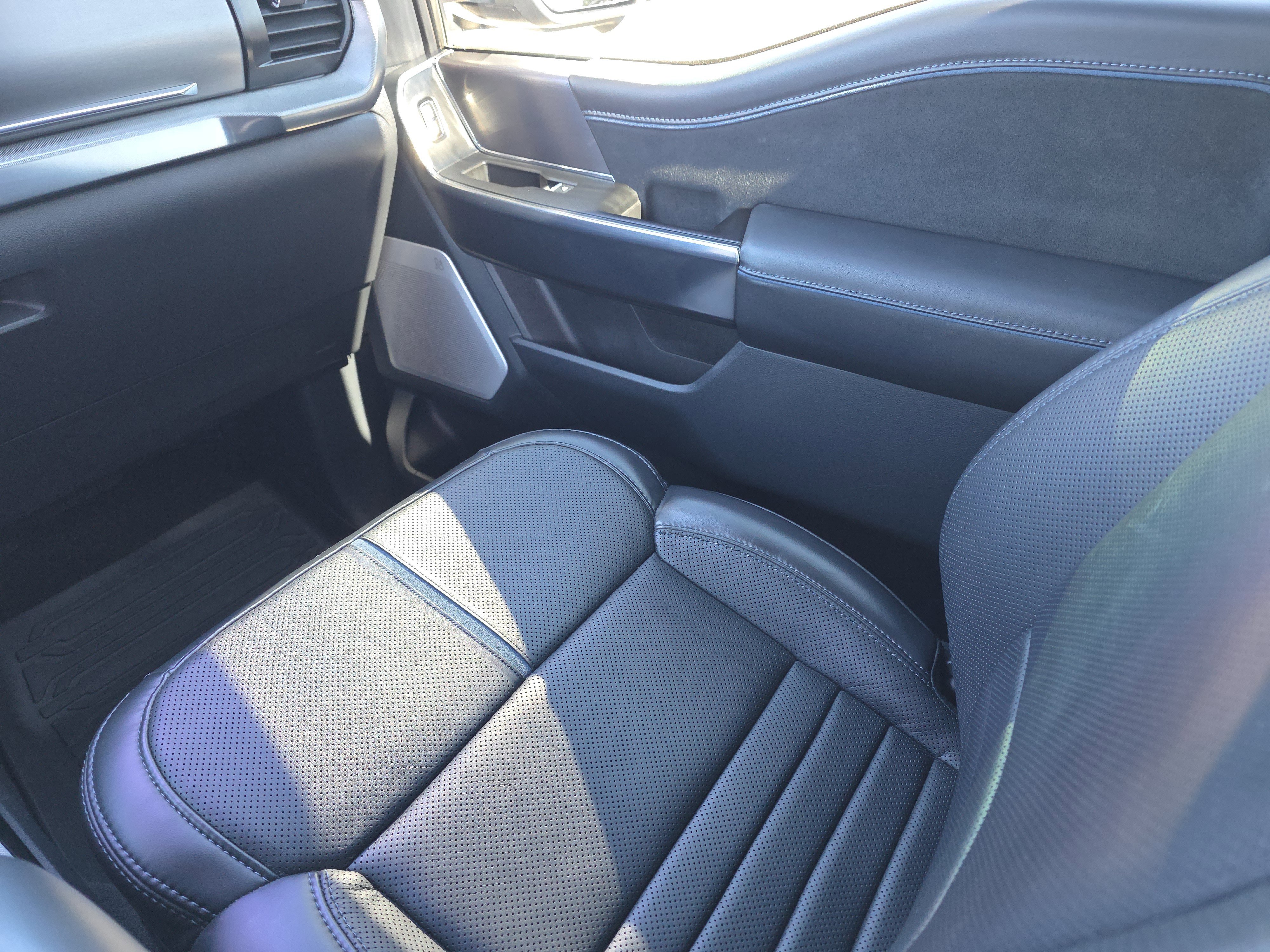 Certified. Black Metallic 2025 Ford F-150 Platinum 4WD 10-Speed Automatic 3.5L PowerBoost Full-Hybrid V6 ALLOY WHEELS, BACK UP CAMERA, BEST PRICE, BEST SELECTION!, BLUETOOTH, 3.5L PowerBoost Full-Hybrid V6, 4WD, 4-Wheel Disc Brakes, 8 Speakers, ABS brakes, Active Cruise Control, Adjustable pedals, Air Conditioning, AM/FM radio: SiriusXM with 360L, Auto High-beam Headlights, Auto tilt-away steering wheel, Auto-dimming door mirrors, Auto-dimming Rear-View mirror, Automatic temperature control, Brake assist, Bumpers: body-color, Compass, Delay-off headlights, Driver door bin, Driver vanity mirror, Dual front impact airbags, Dual front side impact airbags, Electronic Locking w/3.55 Axle Ratio, Electronic Stability Control, Emergency communication system: SYNC 4 911 Assist, Equipment Group 702A High, Front anti-roll bar, Front Bucket Seats, Front Center Armrest, Front dual zone A/C, Front fog lights, Front reading lights, Front wheel independent suspension, Fully automatic headlights, Garage door transmitter, Heads-Up Display, Heated door mirrors, Heated front seats, Heated rear seats, Heated steering wheel, Illuminated entry, Leather steering wheel, Low tire pressure warning, Memory seat, Navigation system: Connected Navigation, Occupant sensing airbag, Outside temperature display, Overhead airbag, Overhead console, Panic alarm, Passenger door bin, Passenger vanity mirror, Pedal memory, Power door mirrors, Power driver seat, Power passenger seat, Power steering, Power windows, Radio data system, Radio: B&O Sound System by Bang & Olufsen, Radio: B&O Unleashed Sound System by Bang & Olufsen, Rain sensing wipers, Rear reading lights, Rear seat center armrest, Rear step bumper, Rear window defroster, Remote keyless entry, Security system, Speed control, Split folding rear seat, Steering wheel memory, Steering wheel mounted audio controls, SYNC 4 w/Enhanced Voice Recognition, Tachometer, Telescoping steering wheel, Tilt steering wheel, Traction control, Trip computer, Turn signal indicator mirrors, Twin Panel Moonroof, Unique Multi-Contour Leather Bucket Seats, Variably intermittent wipers, Ventilated front seats, Voltmeter, Wheels: 22 Gloss Black w/Inserts.