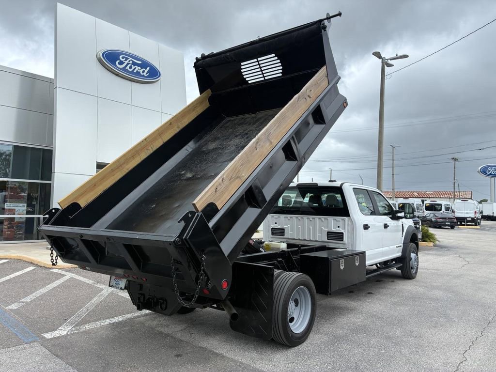 The spacious crew cab provides ample room for your crew, while the Rugby dump body offers unmatched versatility. Loaded with premium features like the Power Equipment Group, this Ford F-450 is designed to make your life easier. Enjoy the convenience of power locks, windows, and heated, power-adjustable mirrors, as well as advanced safety technologies like ABS brakes and dual airbags.