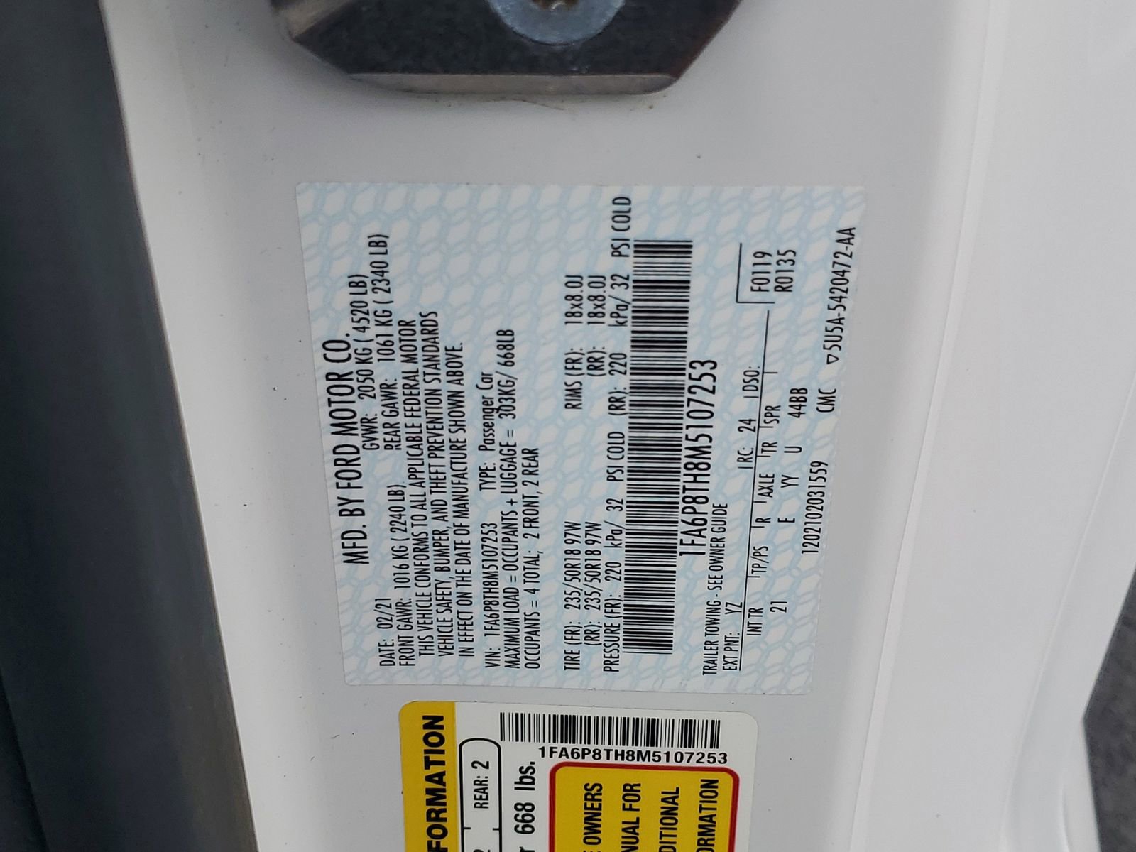Oxford White 2021 Ford Mustang EcoBoost RWD 10-Speed Automatic EcoBoost 2.3L I4 GTDi DOHC Turbocharged VCT