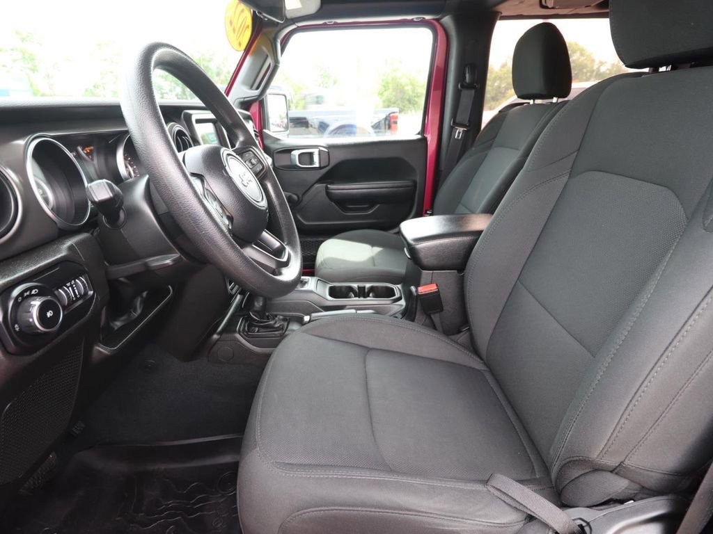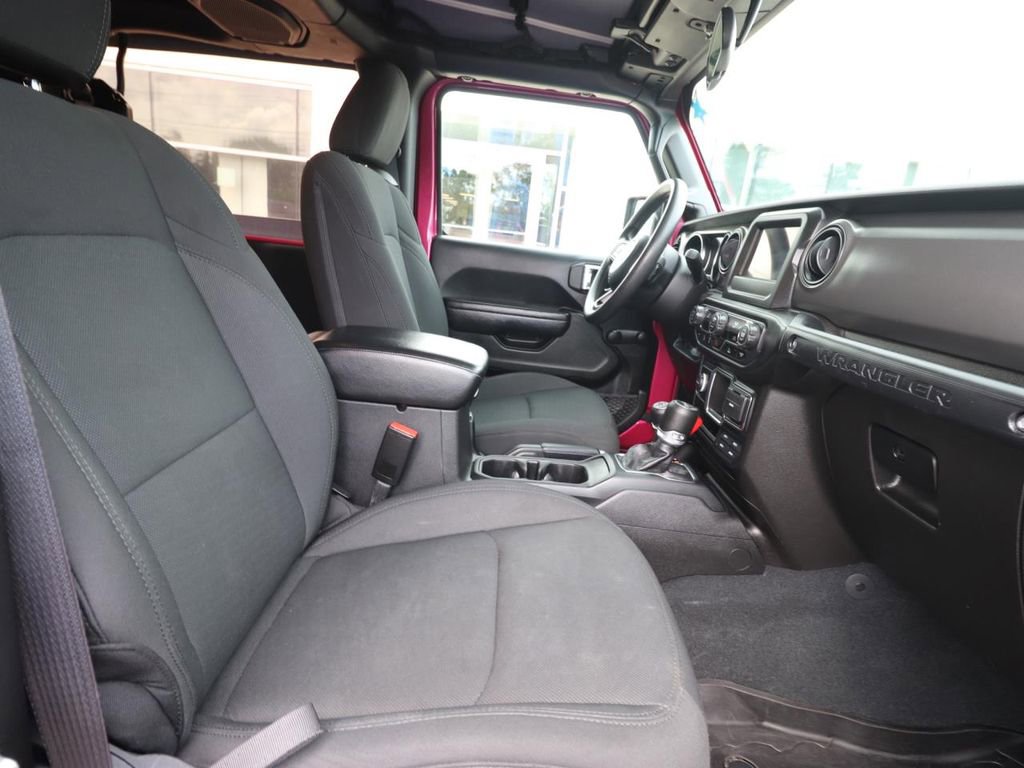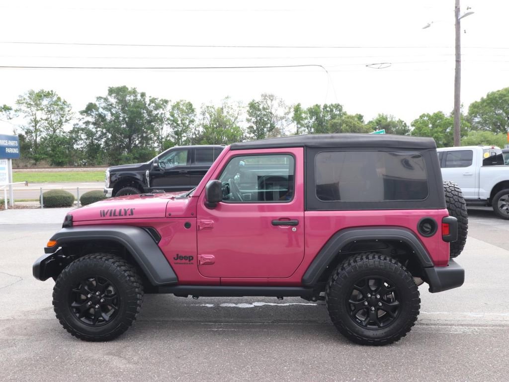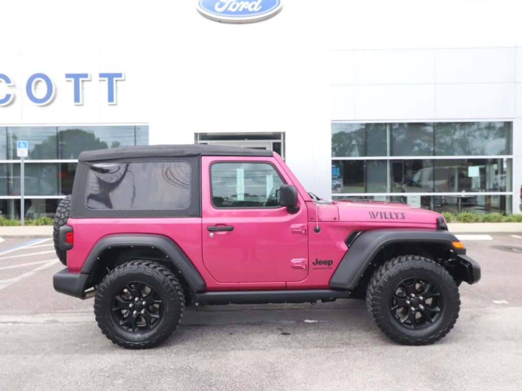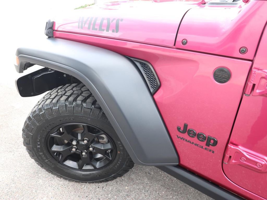 The Willys Wheeler package adds a host of rugged features, including a black grille, Willys hood decal, and BF Goodrich all-terrain tires. The exterior is finished in a vibrant Red color, giving this Wrangler a bold and adventurous look. Inside, you'll find a well-appointed cabin with a 7-inch touchscreen display, Apple CarPlay, and a backup camera for added convenience and safety.