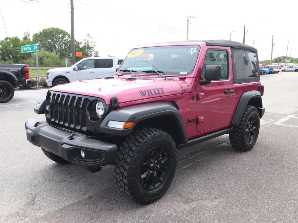 This 2022 Jeep Wrangler Willys Wheeler is the perfect blend of off-road capability and modern convenience. Powered by a 2.0L I4 DOHC Turbo engine and equipped with an 8-speed automatic transmission, this Wrangler delivers impressive performance and efficiency, with an EPA-estimated 22 city/24 highway MPG.