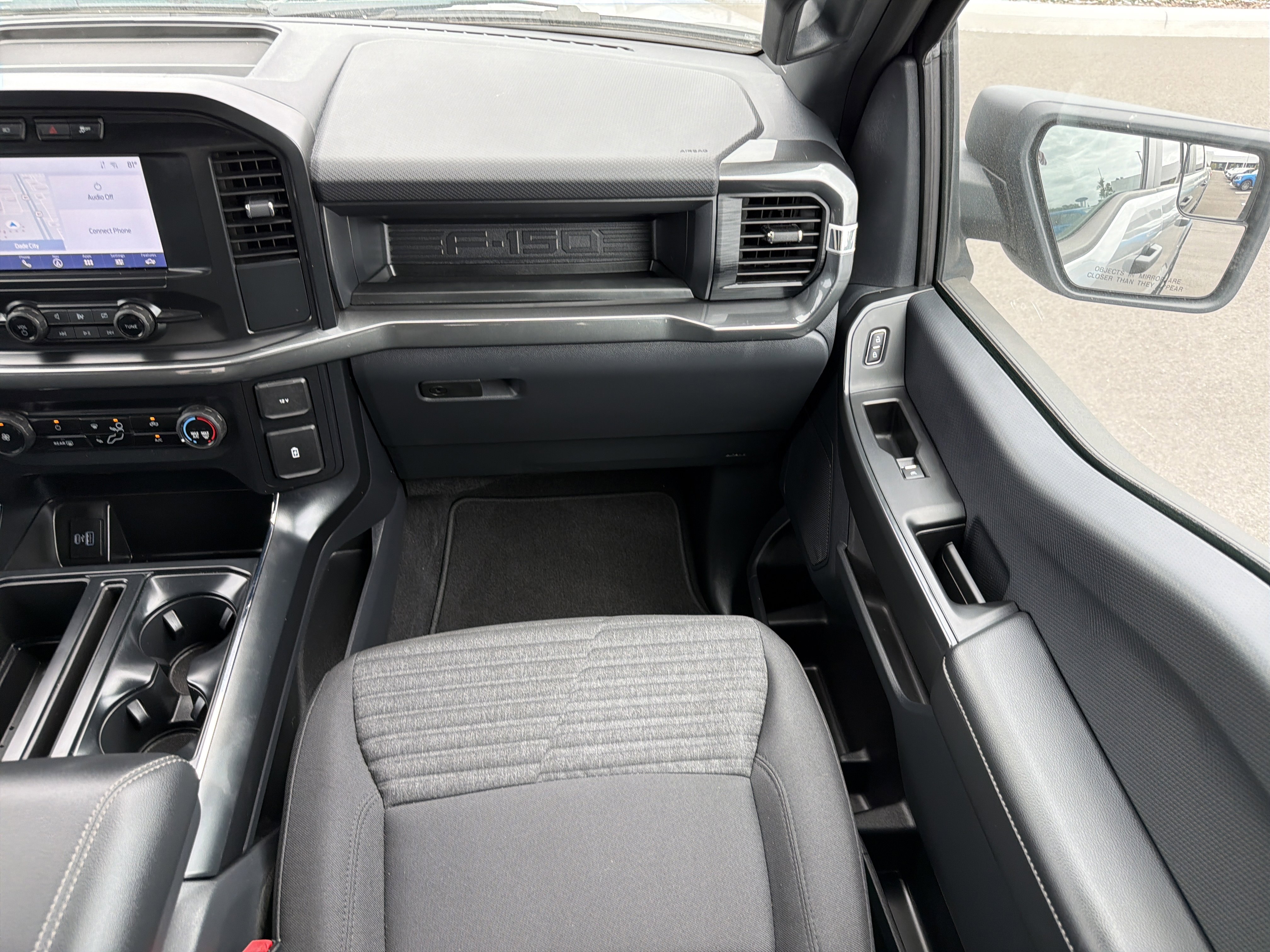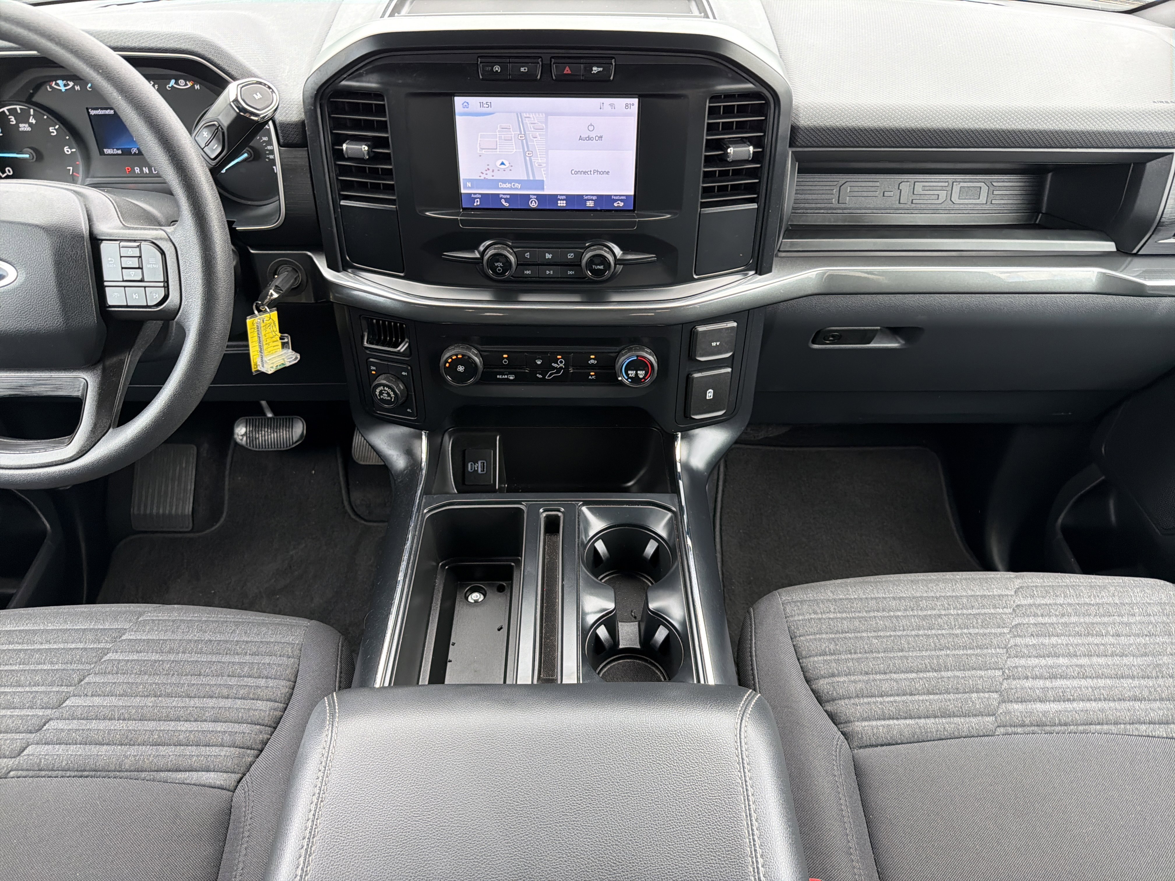 Inside, the F-150 XL offers a comfortable and well-equipped cabin. The unique sport cloth front seats provide excellent support and feature manual lumbar adjustment, while the SYNC 4 infotainment system keeps you connected with enhanced voice recognition and wireless phone integration.