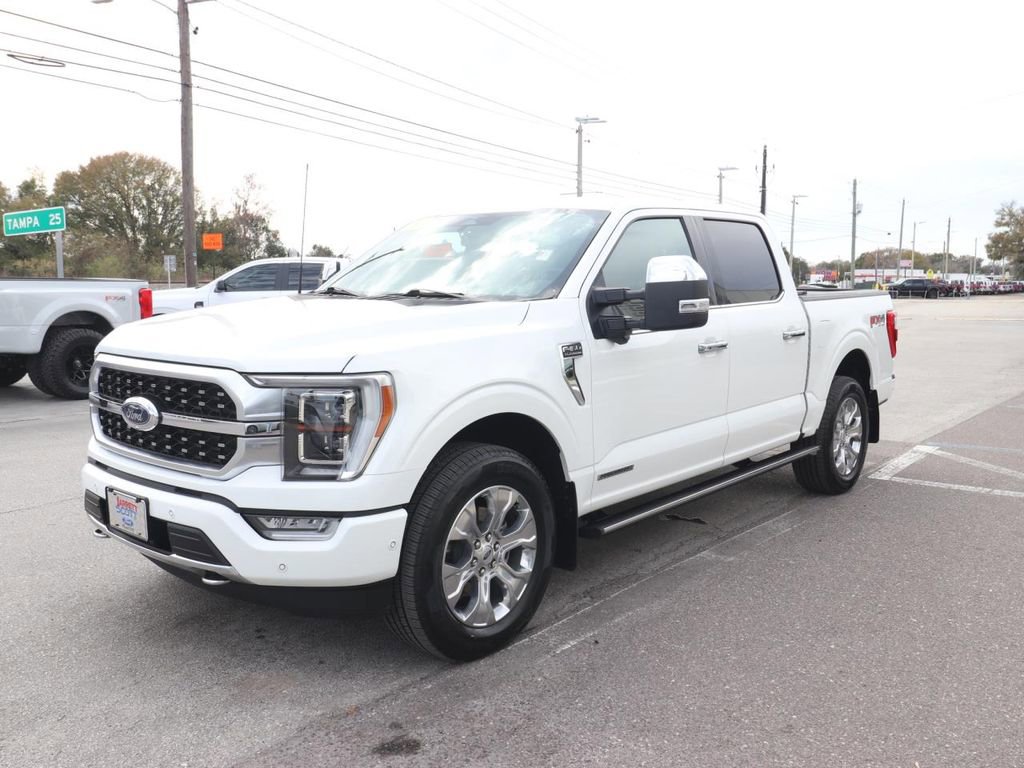 The exterior of this F-150 Platinum is adorned in a stunning Star White Metallic Tri-Coat finish, exuding a sense of sophistication and refinement. Under the hood, the powerful 3.5L PowerBoost Hybrid V6 engine, paired with a 10-Speed Automatic transmission and 4WD, provides the perfect blend of power and efficiency, making this truck a true workhorse.