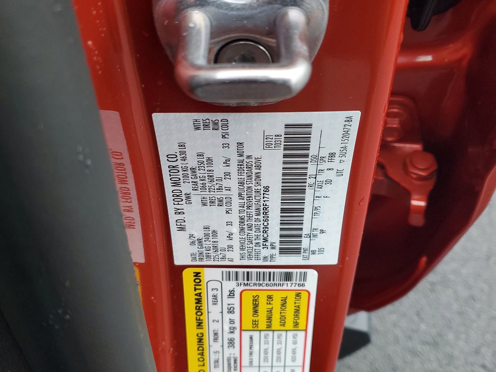 Hot Pepper Red Metallic Tinted Clearcoat 2024 Ford Bronco Sport Outer Banks 4WD 8-Speed Automatic 1.5L EcoBoost