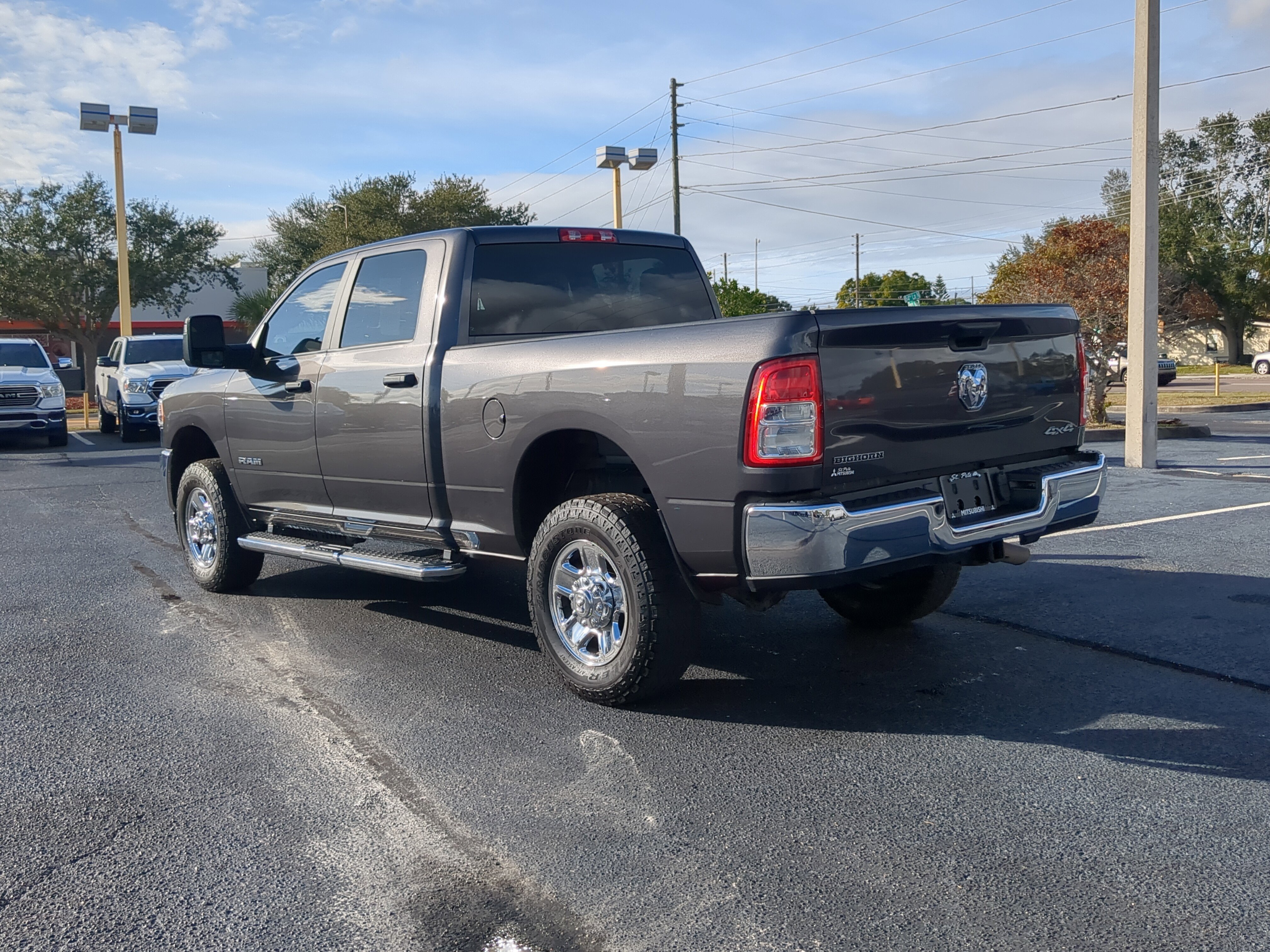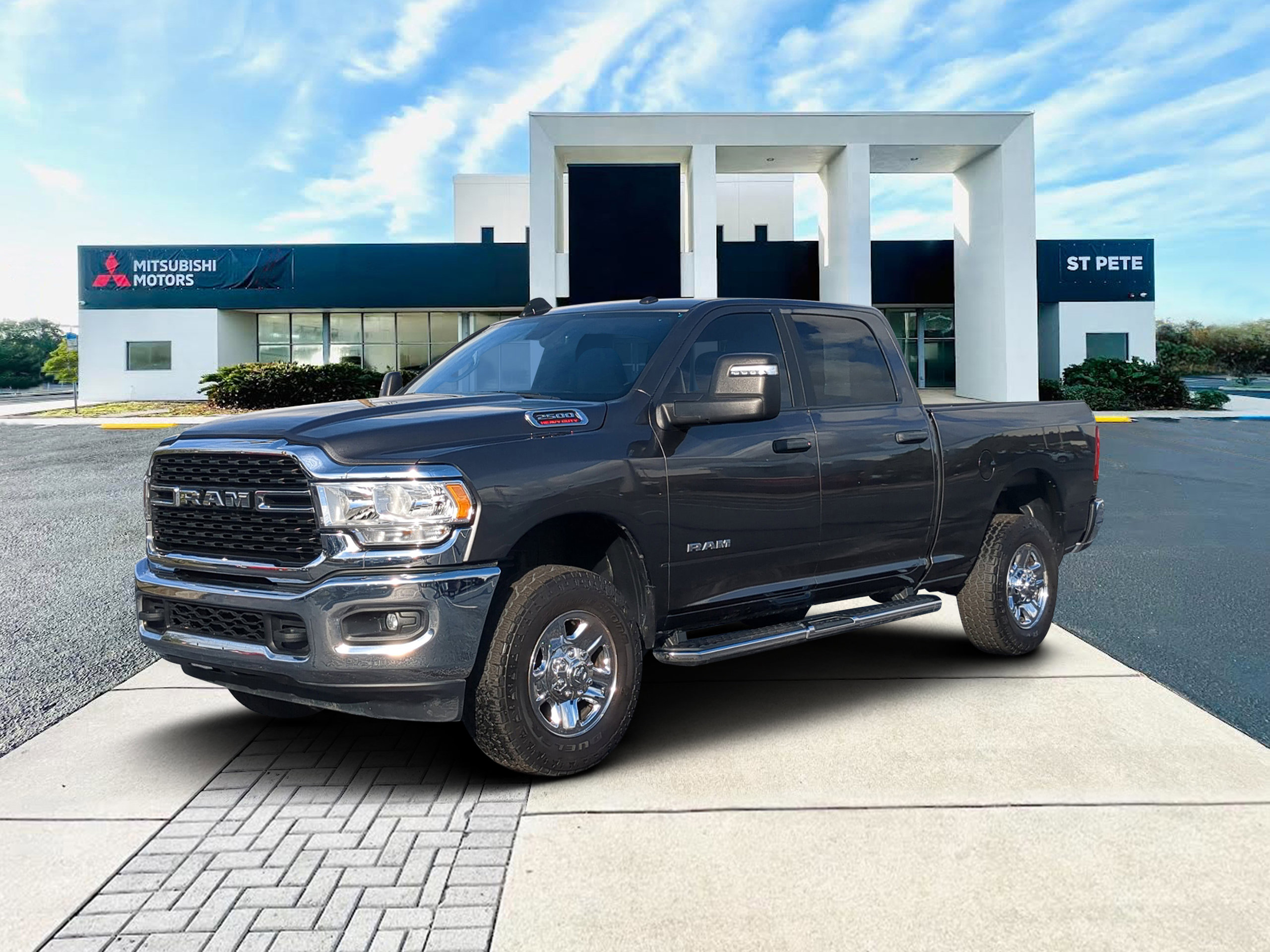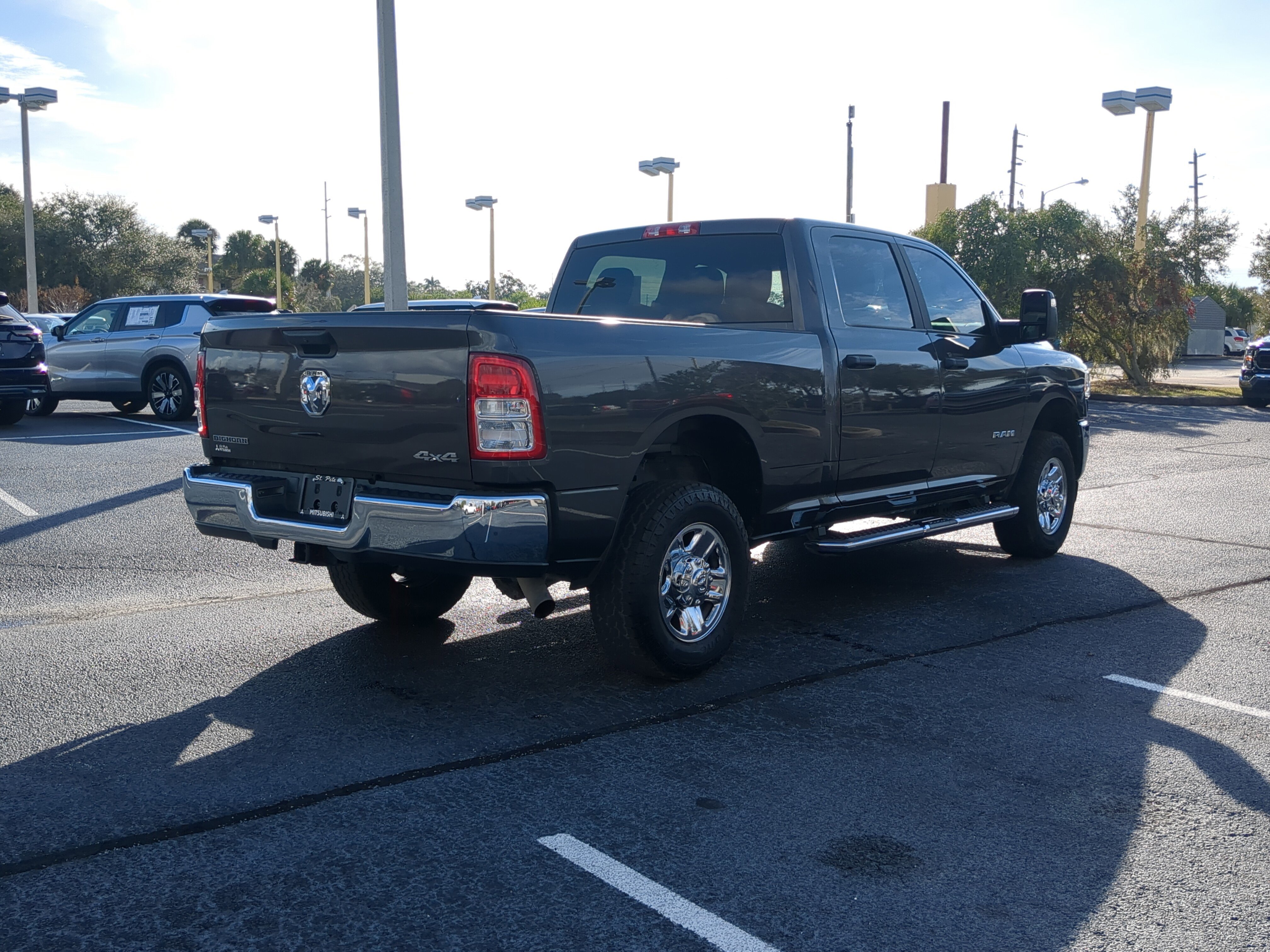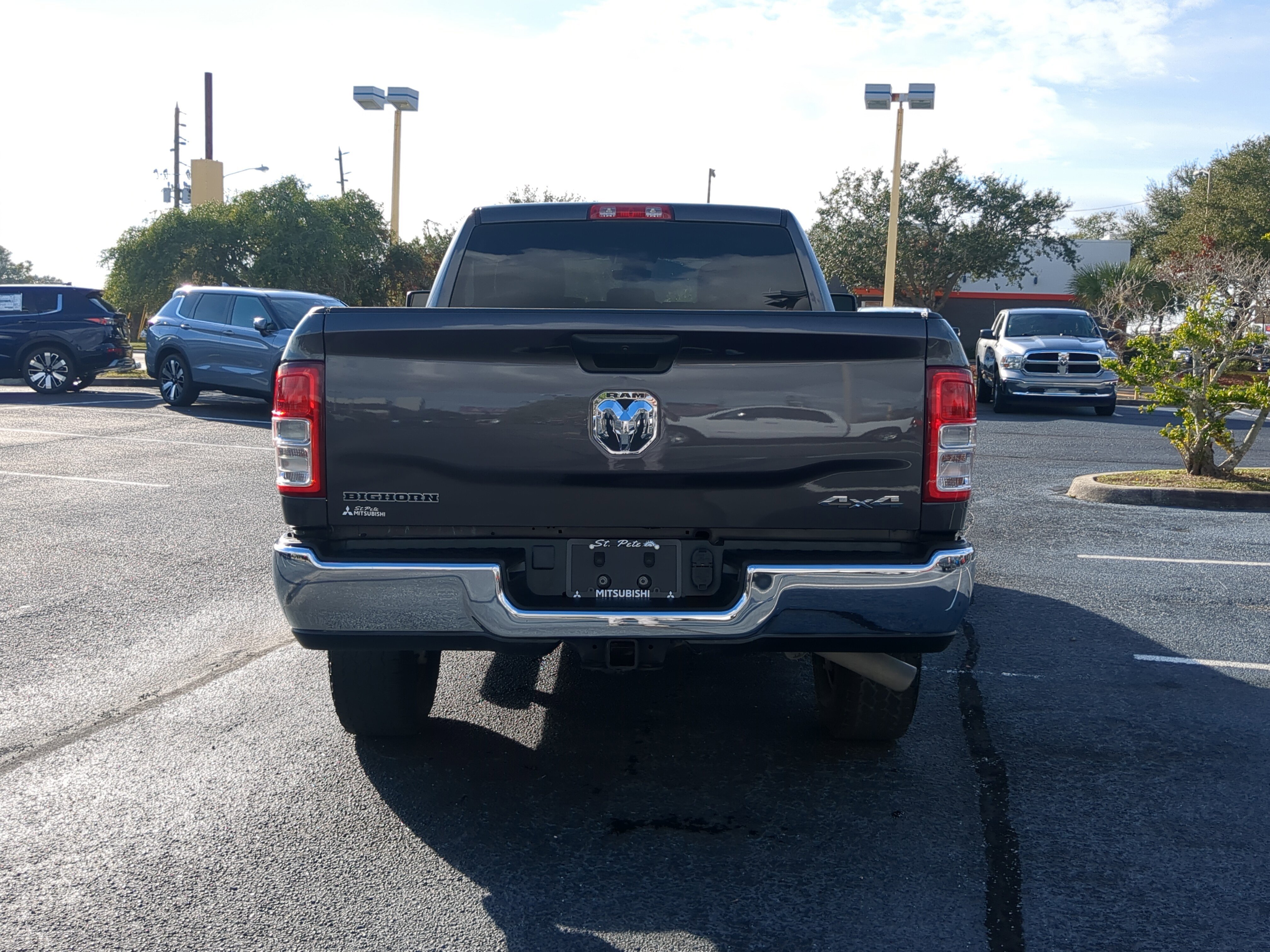 St Pete Mitsubishi Certfied Program Certified, 2 Way Rear Headrest Seat, 2nd Row In Floor Storage Bins, 3.73 Axle Ratio, 4 Way Front Headrests, 4-Wheel Disc Brakes, 40/20/40 Split Bench Seat, 4G LTE Wi-Fi Hot Spot, 6 Speakers, 8.4" Touchscreen Display, ABS brakes, Active Noise Control System, Air Conditioning, Apple CarPlay, Auto Power-Folding Mirrors, Big Horn IP Badge, Black Exterior Mirrors, Bluetooth Handsfree Phone & Audio, Brake assist, Bumpers: chrome, Center Hub, Center Stack Storage Drawer, Chrome Flat Cab-Length Side Steps, Cloth 40/20/40 Bench Seat, Compass, Connectivity - US/Canada, Delay-off headlights, Driver door bin, Dual front impact airbags, Dual front side impact airbags, Dual Glove Boxes, Electronic Stability Control, Electronically Controlled Throttle, Emergency communication system: SiriusXM Guardian, Exterior Mirrors Courtesy Lamps, Exterior Mirrors w/Heating Element, Exterior Mirrors w/Supplemental Signals, Foam Bottle Insert (Door Trim Panel), Footwell Courtesy Lamp, For Details, Visit DriveUconnect.com, For More Info, Call 800-643-2112, Forward & Reverse Utility Lights, Front anti-roll bar, Front Armrest w/Cupholders, Front Center Armrest w/Storage, Front Center Seat Cushion Storage, Front Fog Lamps, Front License Plate Bracket, Front reading lights, Front Seat Back Map Pockets, Fully automatic headlights, Global Telematics Box Module (TBM), Glove Box Lamp, Google Android Auto, GPS Antenna Input, Heated door mirrors, Illuminated entry, Integrated Center Stack Radio, Integrated Voice Command w/Bluetooth, Leather Wrapped Steering Wheel, Level 1 Equipment Group, Locking Lower Glove Box, Low tire pressure warning, Manual Adjust 4-Way Driver Seat, Manual Adjust 4-Way Front Passenger Seat, Manufacturer's Statement of Origin, Mirror Running Lights, Occupant sensing airbag, Outside temperature display, Overhead airbag, Overhead console, Panic alarm, ParkView Rear Back-Up Camera, Passenger door bin, Passenger vanity mirror, Power 2-Way Driver Lumbar Adjust, Power Adjust 8-Way Driver Seat, Power Adjust Mirrors, Power Adjustable Convex Aux Mirrors, Power door mirrors, Power Heated Fold Telescope Mirrors, Power steering, Power Telescoping Mirrors, Power windows, Premium Cloth 40/20/40 Bench Seat (DISC), Quick Order Package 2GZ Big Horn, Radio data system, Radio: Uconnect 3 w/5" Display, Radio: Uconnect 5 W w/8.4" Display, Rear 60/40 Folding Seat, Rear anti-roll bar, Rear Dome w/On/Off Switch Lamp, Rear Folding Seat, Rear seat center armrest, Rear step bumper, Remote keyless entry, Remote USB Port - Charge Only, Selectable Tire Fill Alert, SiriusXM Radio Service, SiriusXM Satellite Radio, Speed control, Steering Wheel Mounted Audio Controls, Storage Tray, Tachometer, Tilt steering wheel, Tip Start, Tow Hooks, Traction control, Trip computer, Turn signal indicator mirrors, Variably intermittent wipers, Voltmeter, Wheels: 18" x 8.0" Polished Aluminum, Wheels: 18" x 8.0" Steel Chrome Clad, ST PETE MITSUBISHI CERTIFIED PROGRAM, BEST PRICE, BEST SELECTION!, WE DELIVER ANYWHERE!, SMART FINANCE OPTIONS!, PRICED RIGHT DAILY!, STRESS FREE PAYMENT PLANS FOR EVERYONE!, HOME DELIVERY, CURBSIDE PICKUP! ITS EASY!, INTERNET BUYERS! PLEASE DONT DELAY!.