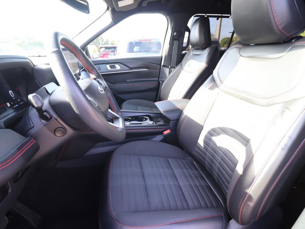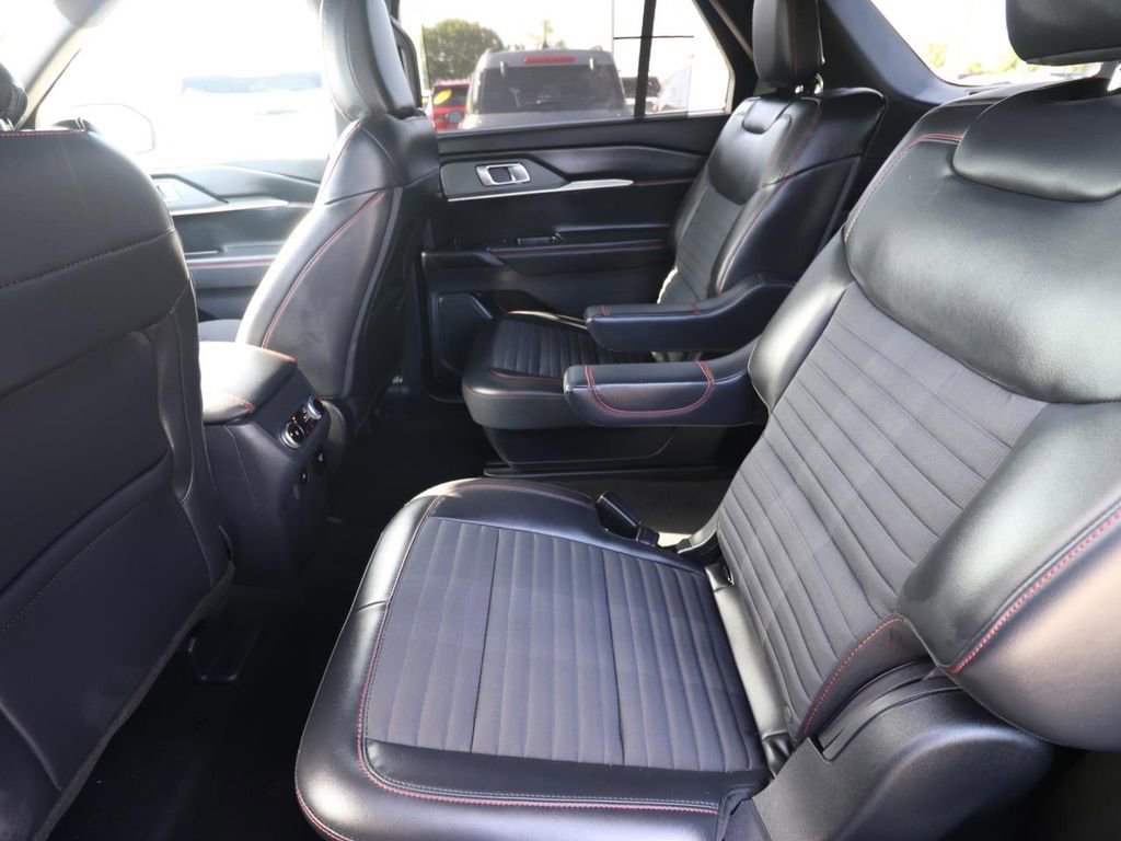Adorned in a bold and eye-catching Rapid Red Metallic Tinted Clearcoat exterior, this Explorer ST-Line exudes a sense of confident style that is sure to turn heads. The premium 21-inch Magnetite-Painted Aluminum wheels and performance-inspired red brake calipers further accentuate its sporty and refined persona.